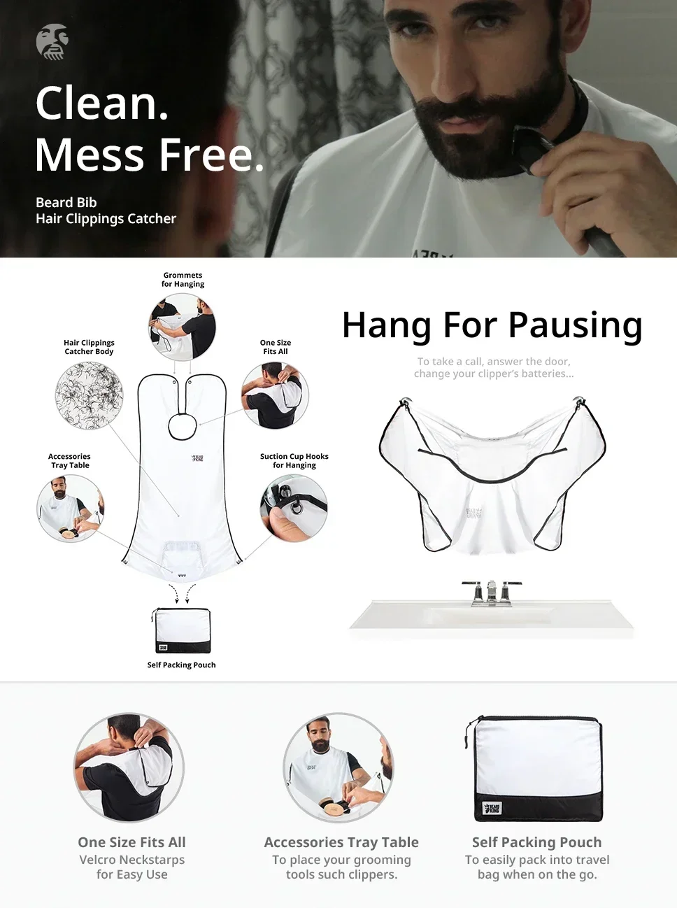 - TIME SAVING: Catches your beard and hair trimmings to allow an easy disposal. No Mess, No Clogged Drains: Fear the Beard Not the Mess.
