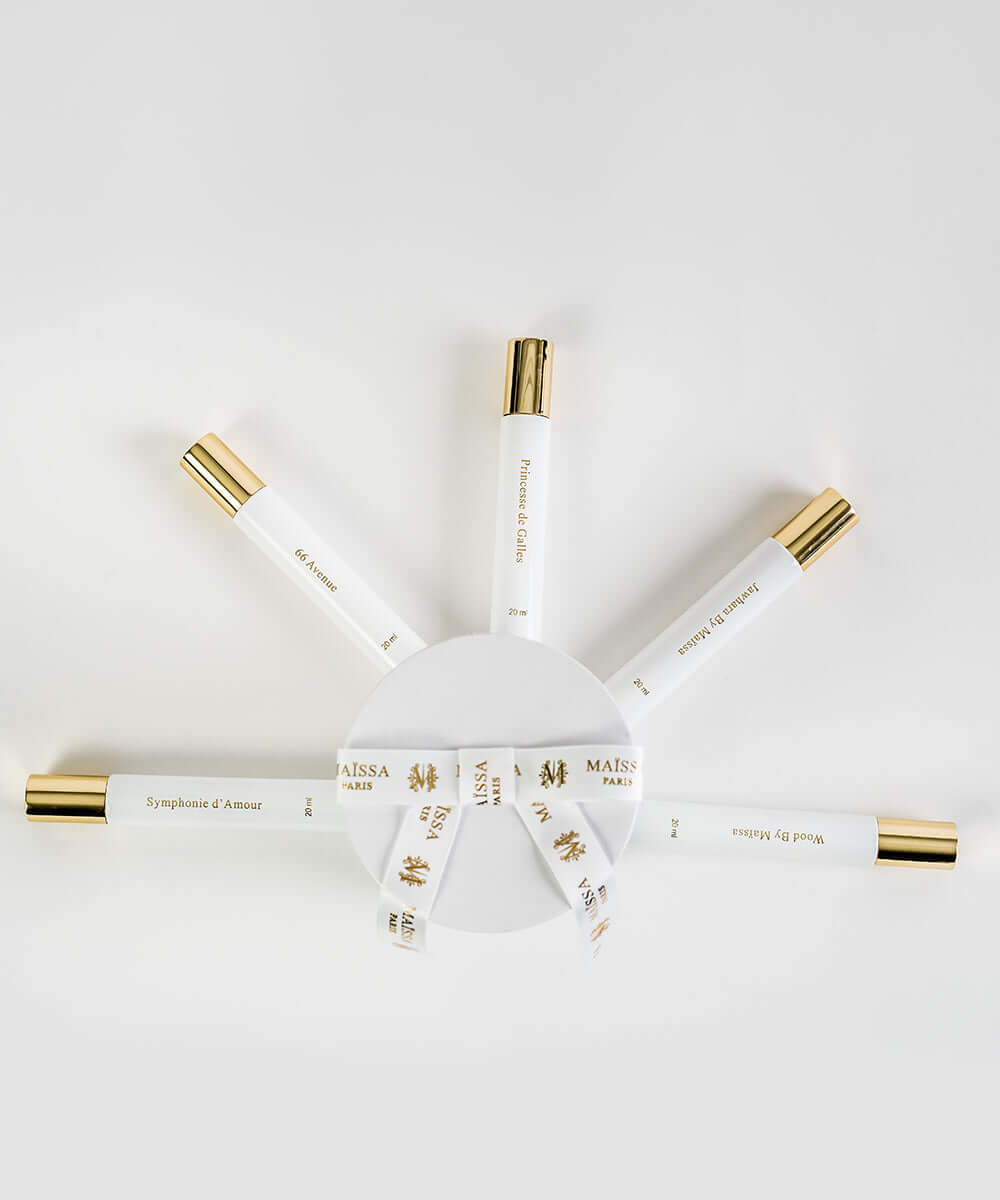 The Best-Seller giftbox is an arrangement of the staple fragrances of the Maison Maïssa Parfums Paris. 5 spray bottles, each holding 20ml. Precious perfumes, perfect as gifts or to wear alternatively.