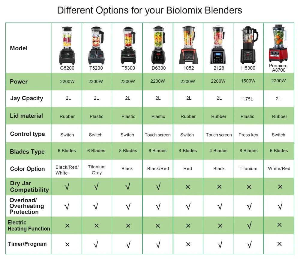 BioloMix Automatic Program Professional Kitchen Smoothie Blender BPA FREE 2L Low-profile Jar Food Mixer Juicer Ice Crusher
