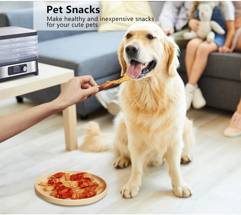 EASY TO STORE & CLEAN - The dehydrator is detachable and the trays are dishwasher safe, making it easy and convenient for you to clean and store; Suitable for drying fruit, vegetables, meat, herbs, mushrooms, or to make beef jerky, turkey jerky, fish jerky, and any other homemade food; Also can be used to make chews and snacks for your pets.