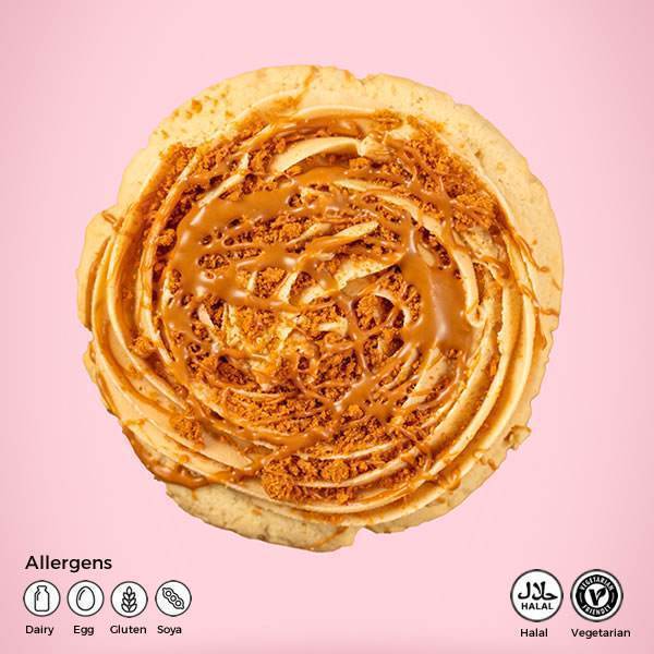 The Biscoff® Cookie box is 6 of our signature American sugar cookies hand piped with a smooth caramelised biscuit crumb buttercream then topped with lashings of Biscoff sauce and crumb.