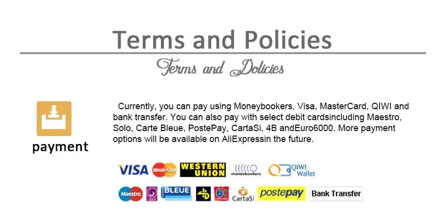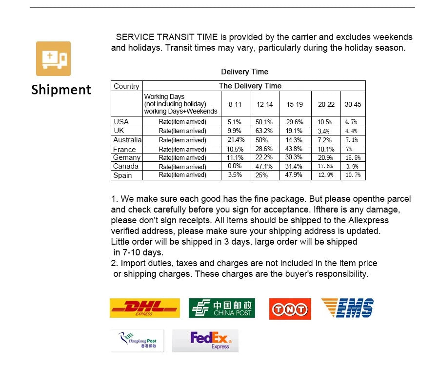 Shipment Ways: TNT/DHL/Fedex/UPS and other express method