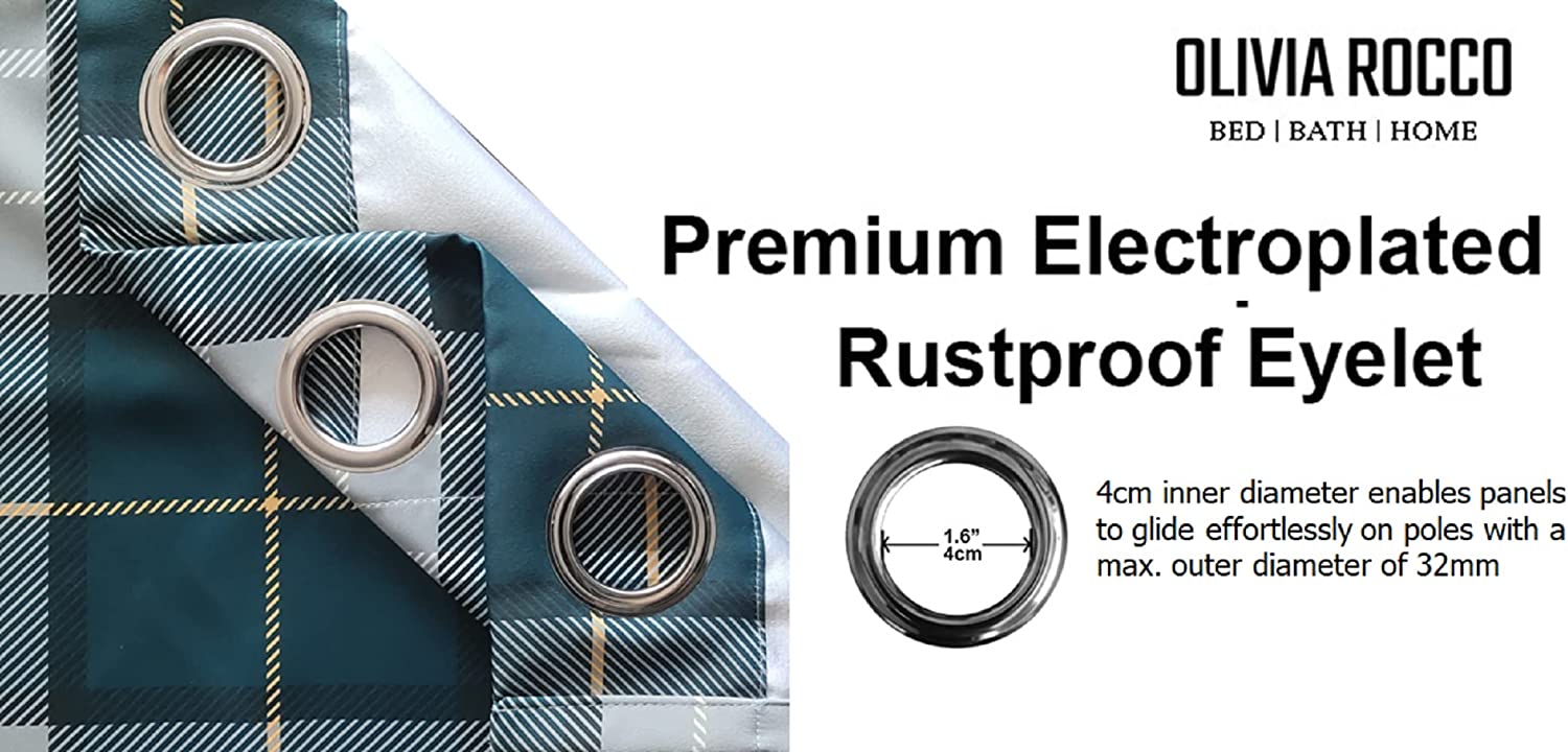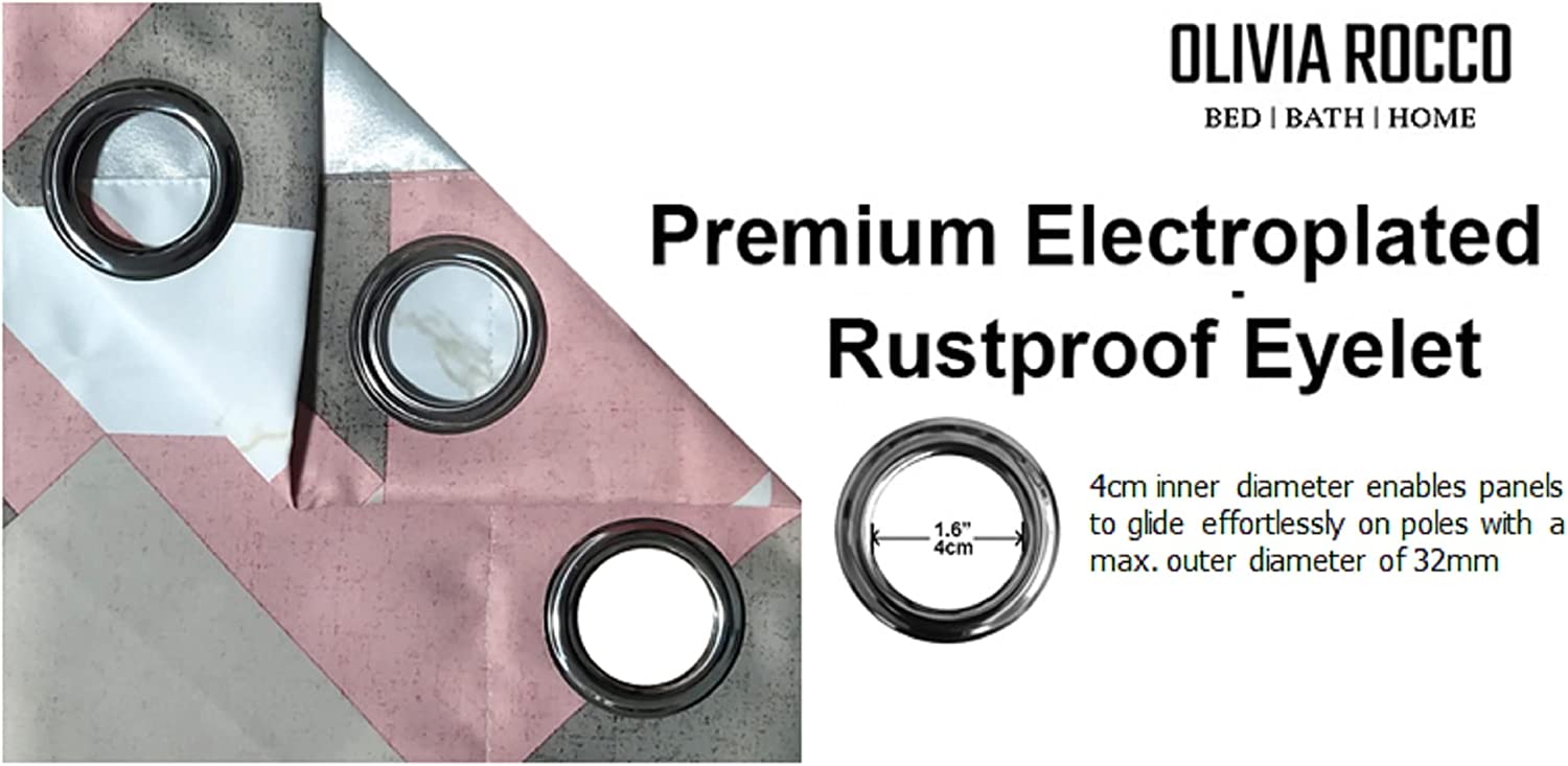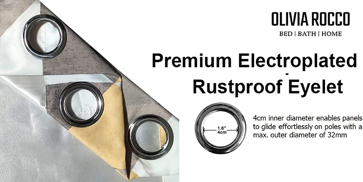 Each set contains one eyelet ring top curtain pair available in the following dimensions:- 45" (117 cm width) x 54" (137 cm drop)