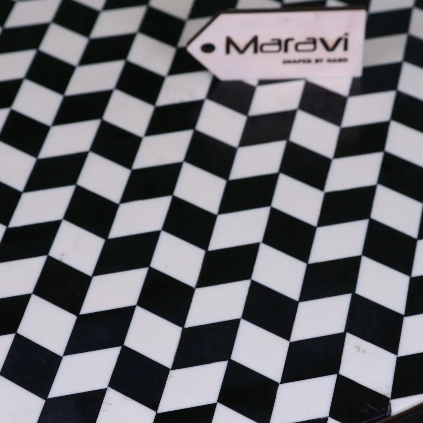 - Unique Resin Tabletops: Each table features a distinctive black and white geometric design, adding a stylish flair to your space.