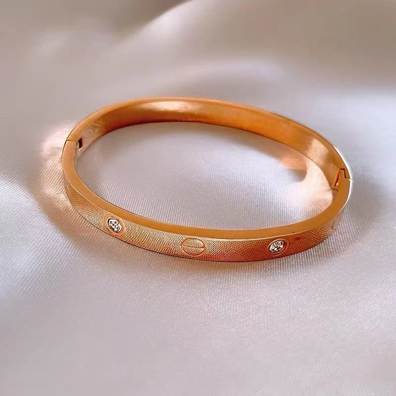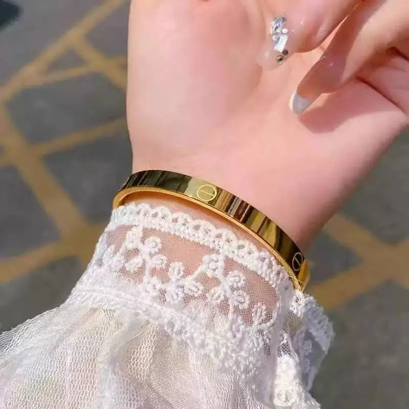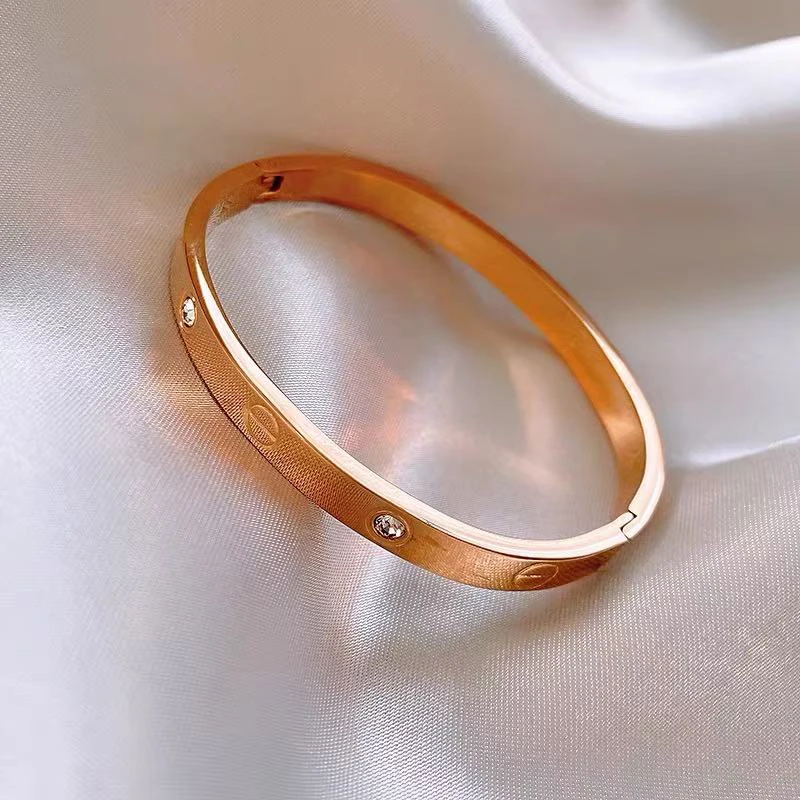 Classic Design Stainless Steel Rose Gold Color Smooth Metal Bracelet for Women's Non Fading Jewelry Trendy Explosive Accessories
