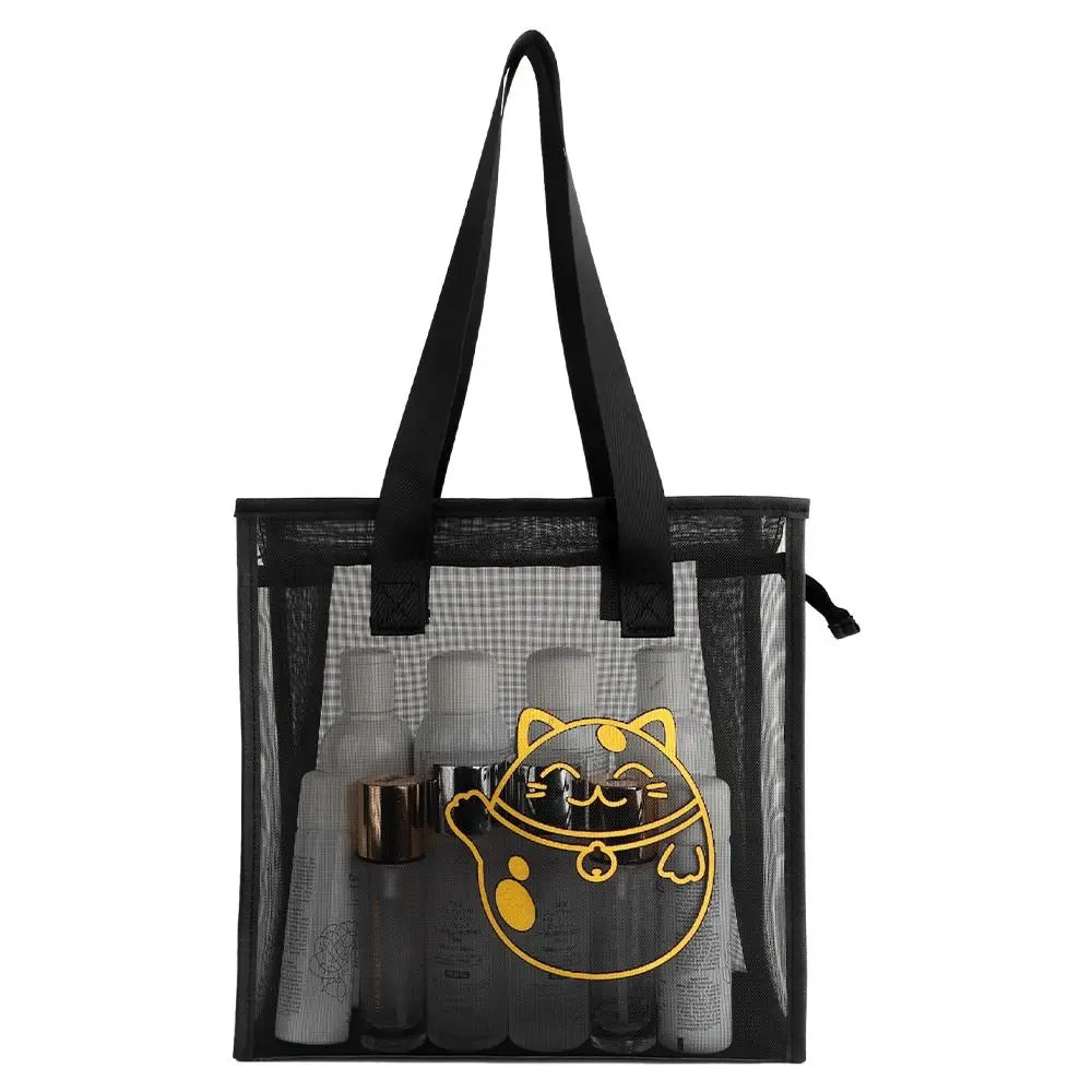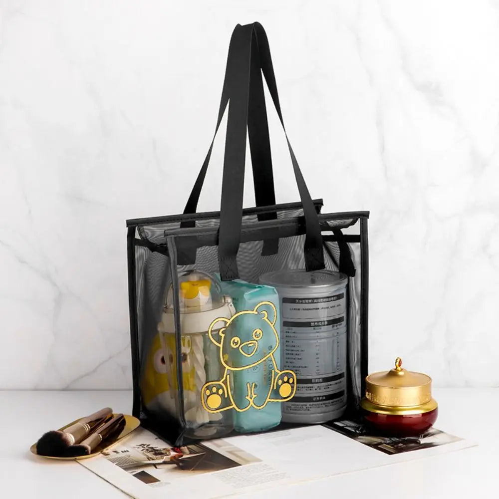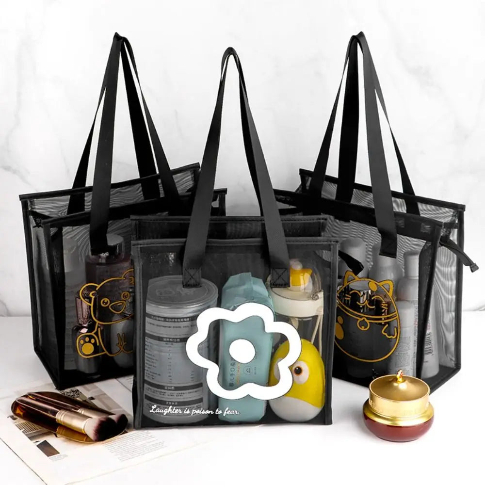 Clear Beach Tote Bag Fashion with Zipper Flower Cartoon Transparent Bag Nylon Mesh Wash Bag Woman