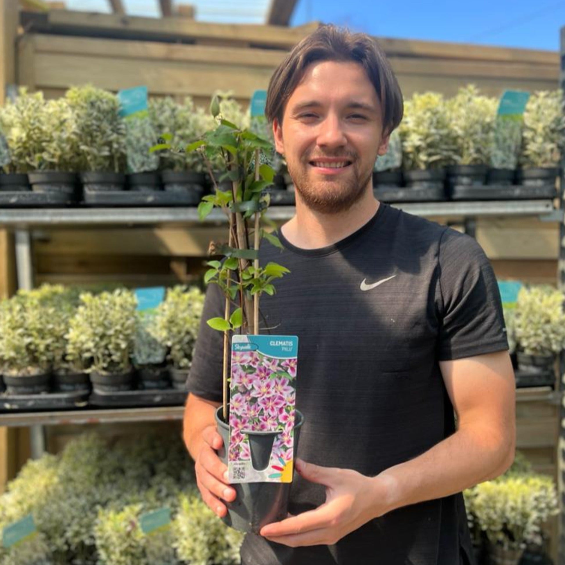 A very popular Clematis which produces pale pink flowers with a dark central bar on each petal with contrasting yellow stamens which really make this fabulous climber stand out against its rich green foliage.