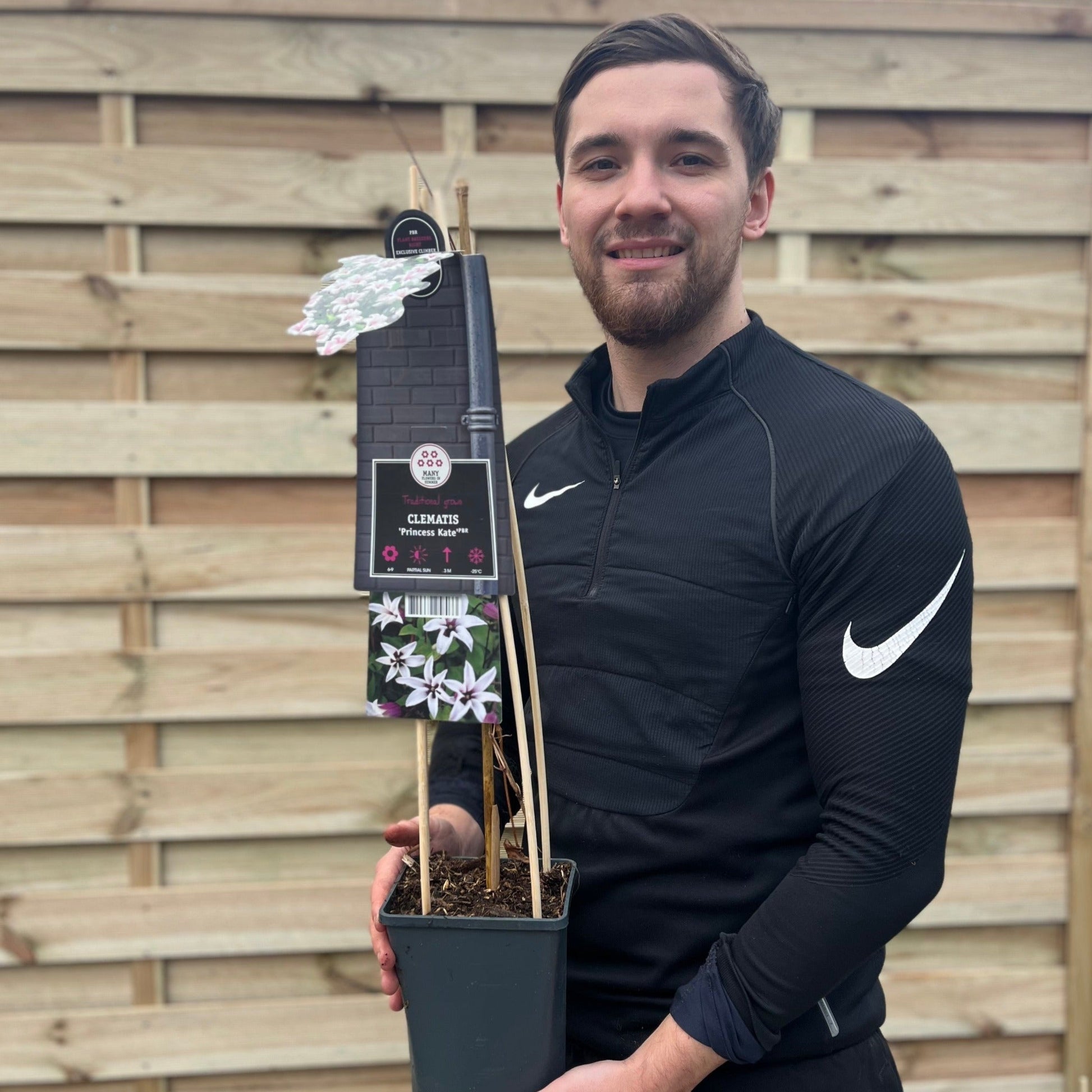 Clematis 'Princess Kate' produces nodding bell - shaped flowers up to 6cm long that flare towards the tips. The distinctive petals are white on the inside and red/purple on the outside.