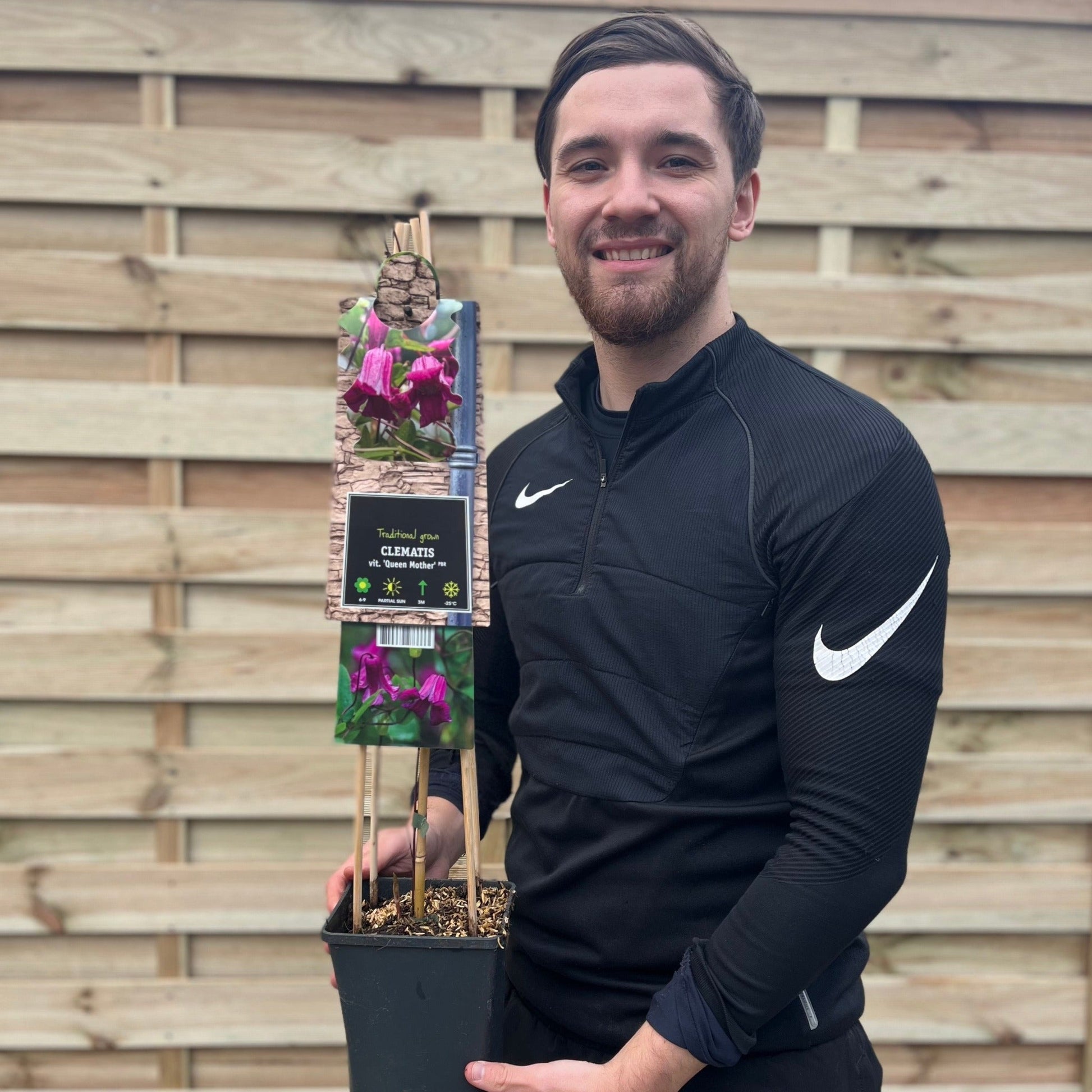 Clematis 'Queen Mother' has nodding single bell shaped flowers which are mauve pink with pink margins.