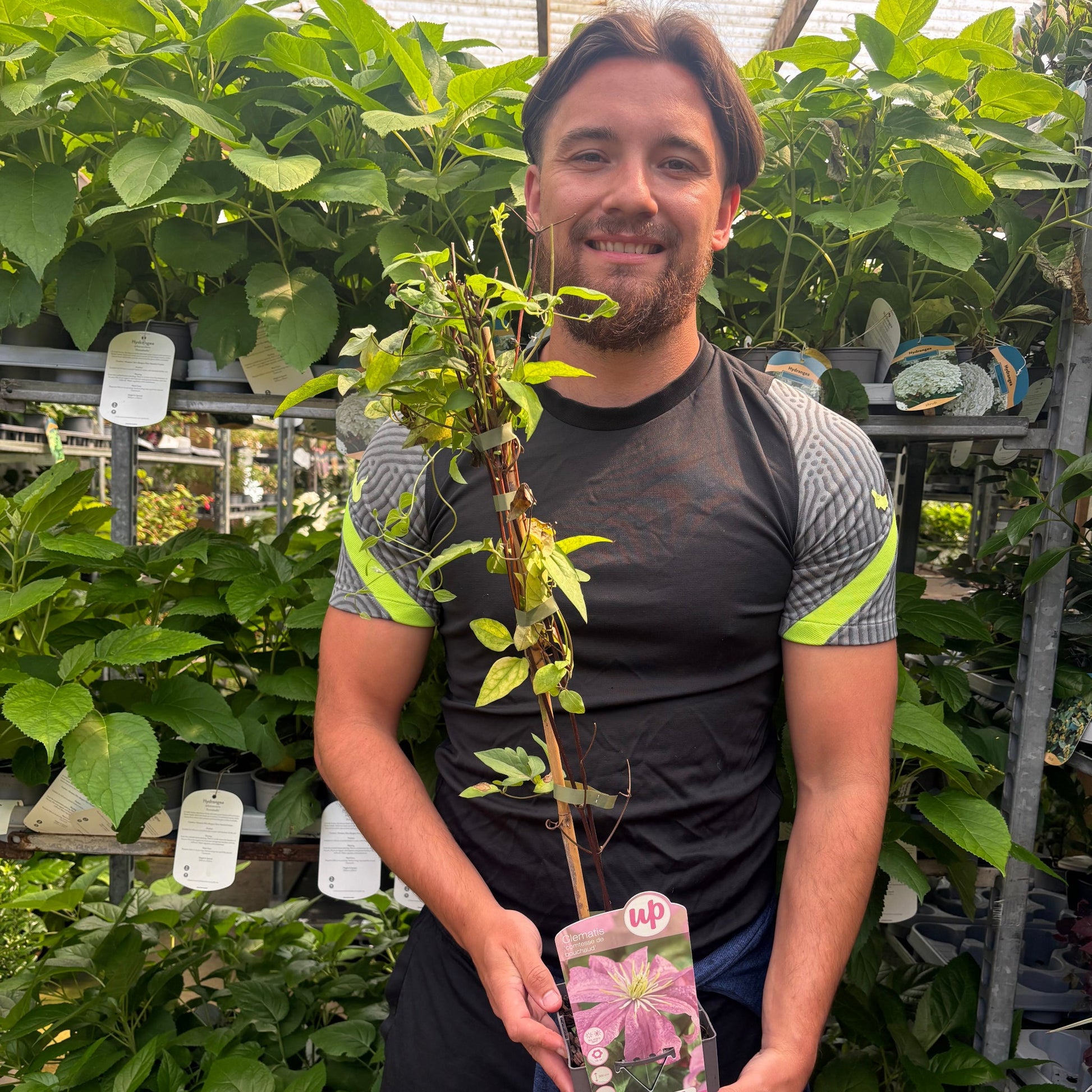 Clematis 'Comtesse de Bouchaud' is a beloved climber, renowned for its profusion of soft pink to mauve blooms with slightly ruffled petals. Flowering from June to September, it creates a stunning display over trellises, fences or pergolas. This hardy and low-maintenance variety is ideal for adding vertical interest and romantic colour to any garden.