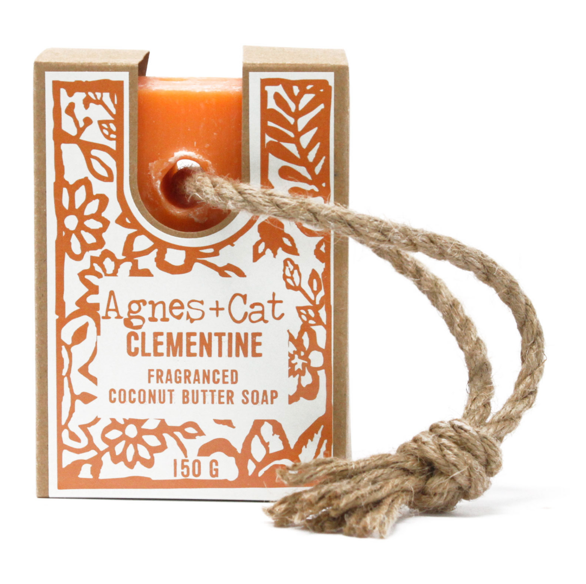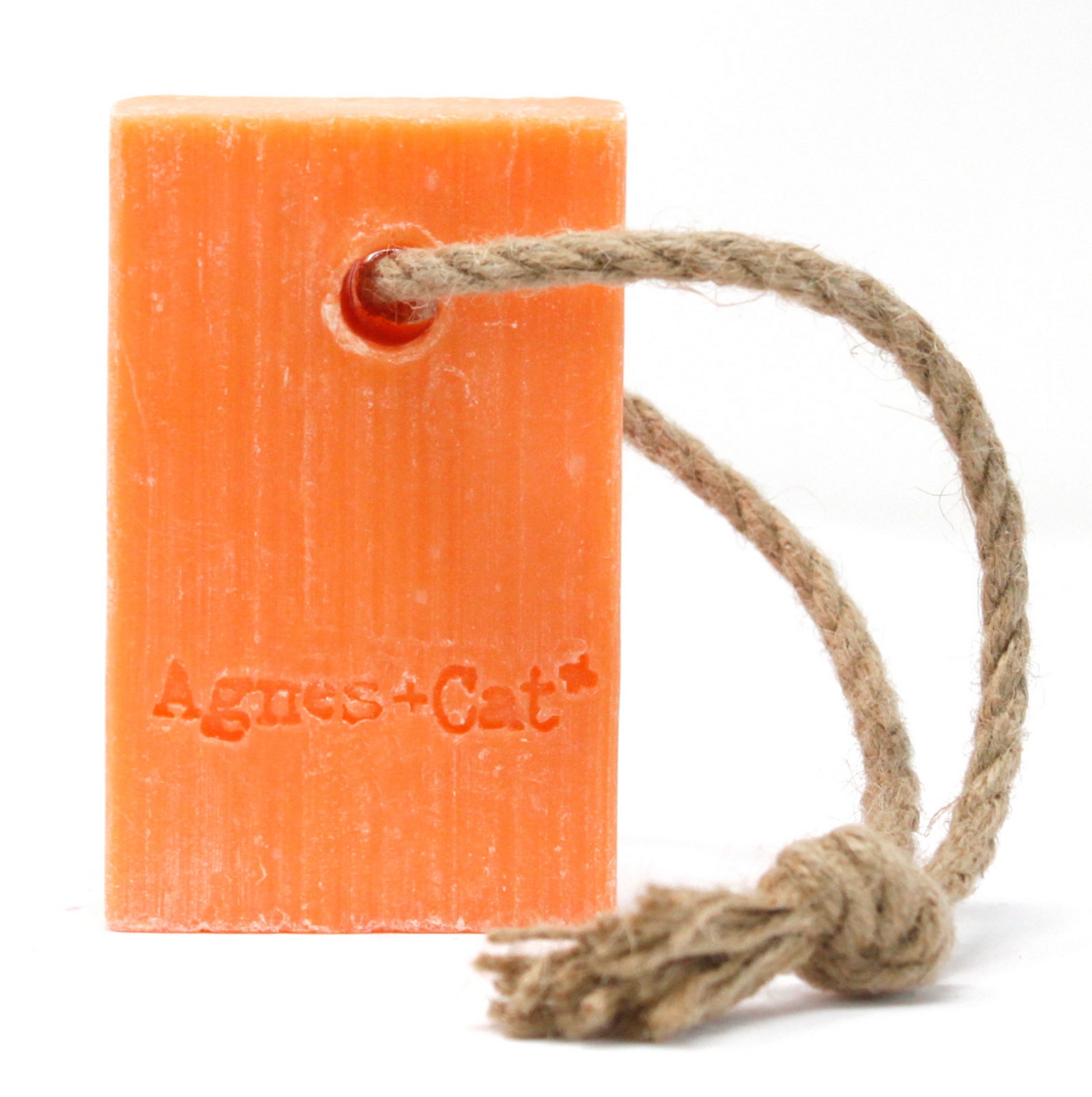 Experience the refreshing burst of freshly squeezed oranges and clementines with Clementine Soap on a Rope.
