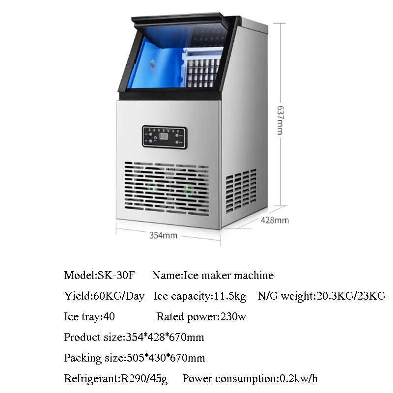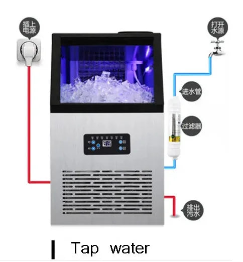 Commercial Ice Maker Countertop Automatic Built-in Cube Generator Electric Cooler Machine Home Appliance