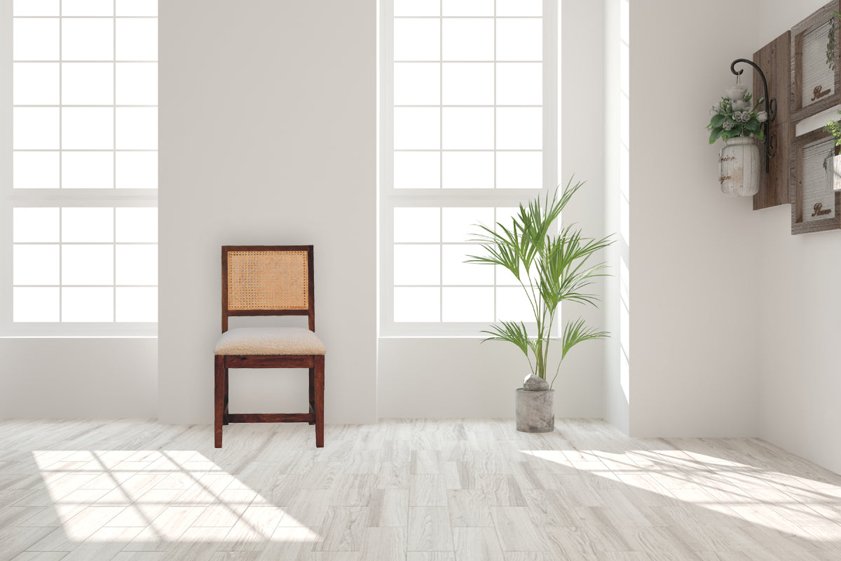 Cream Boucle Rattan Chair