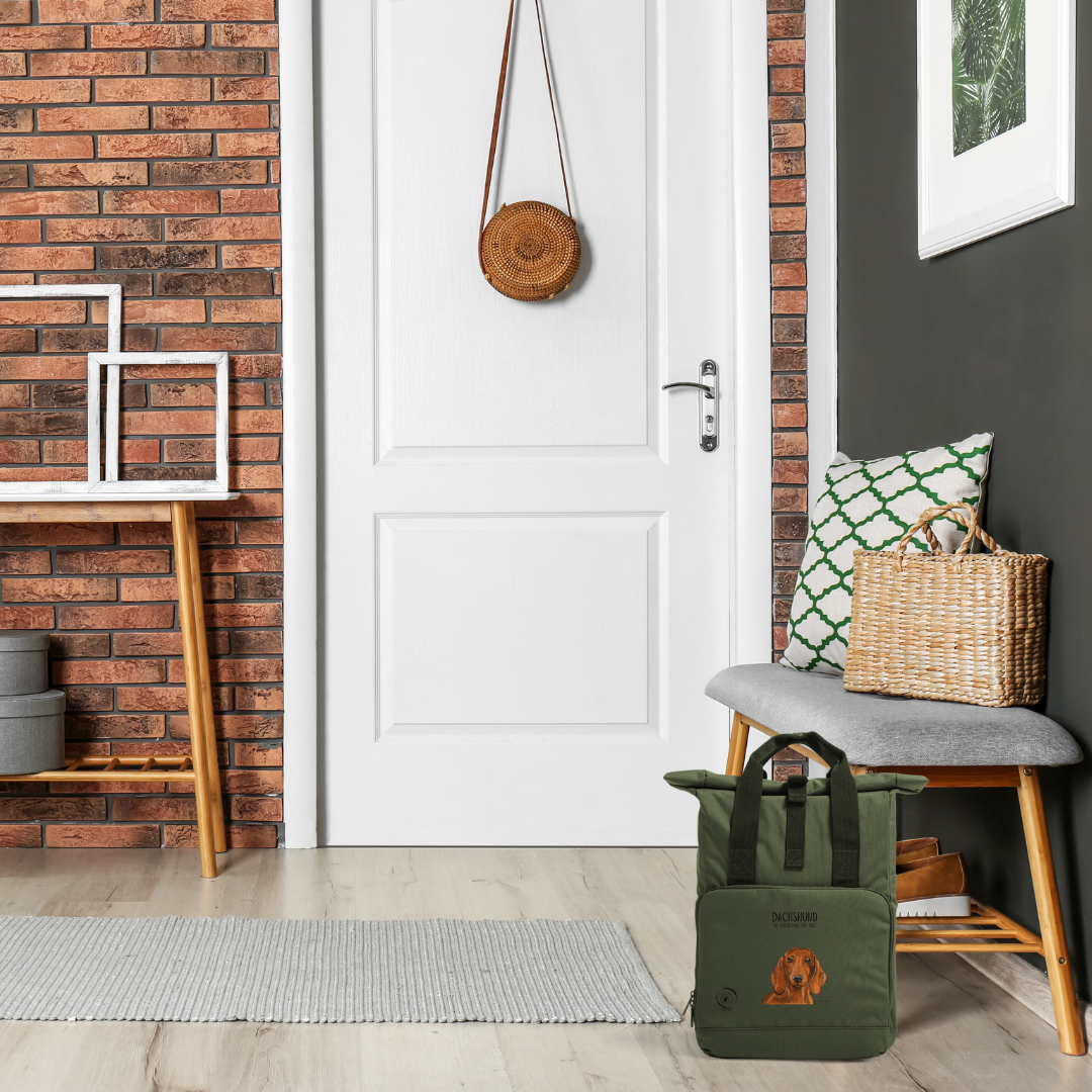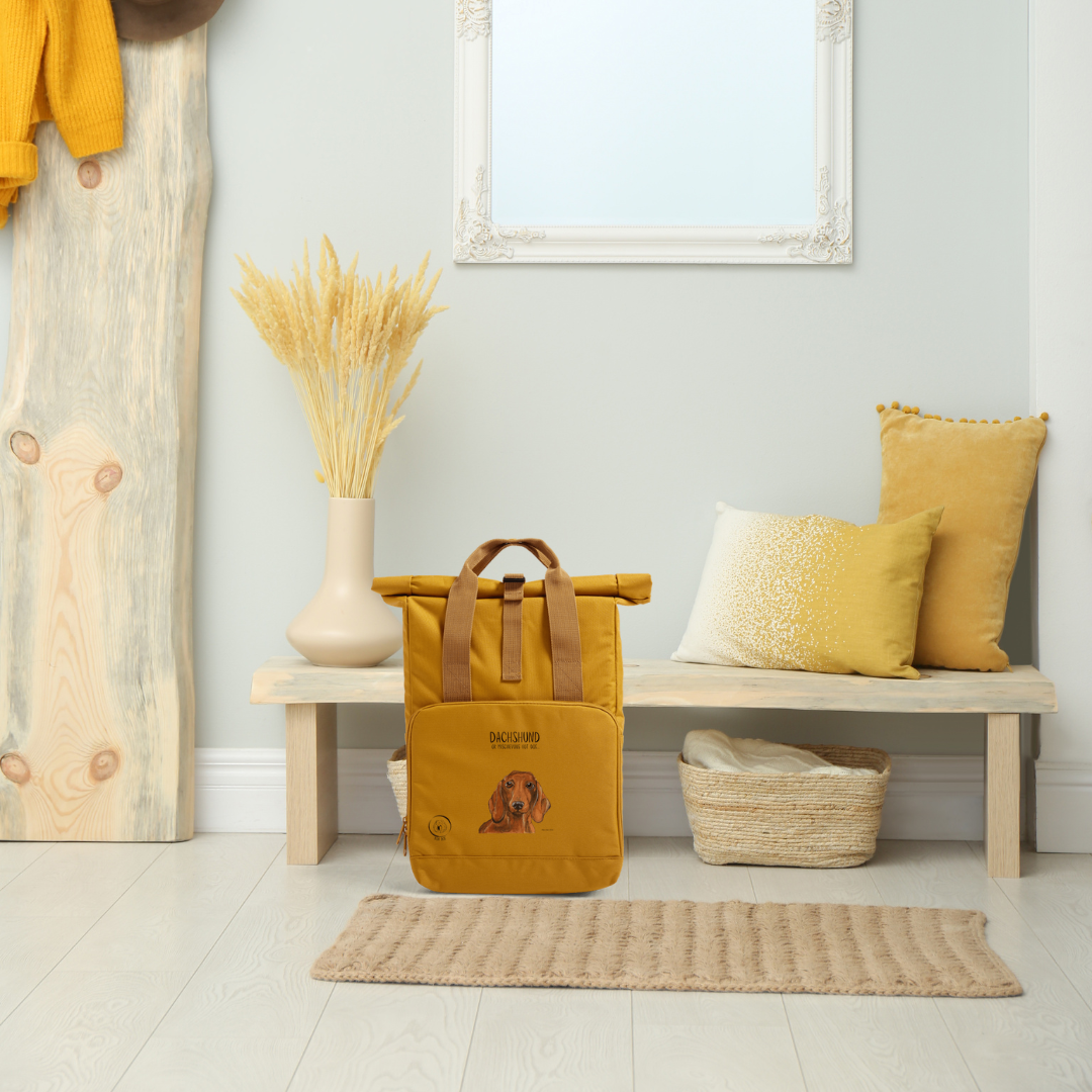 Meet the ultimate backpack for Dachshund lovers—a high-end roll-top design inspired by the mighty wiener dog. Just like your Dachshund at home, this bag is: