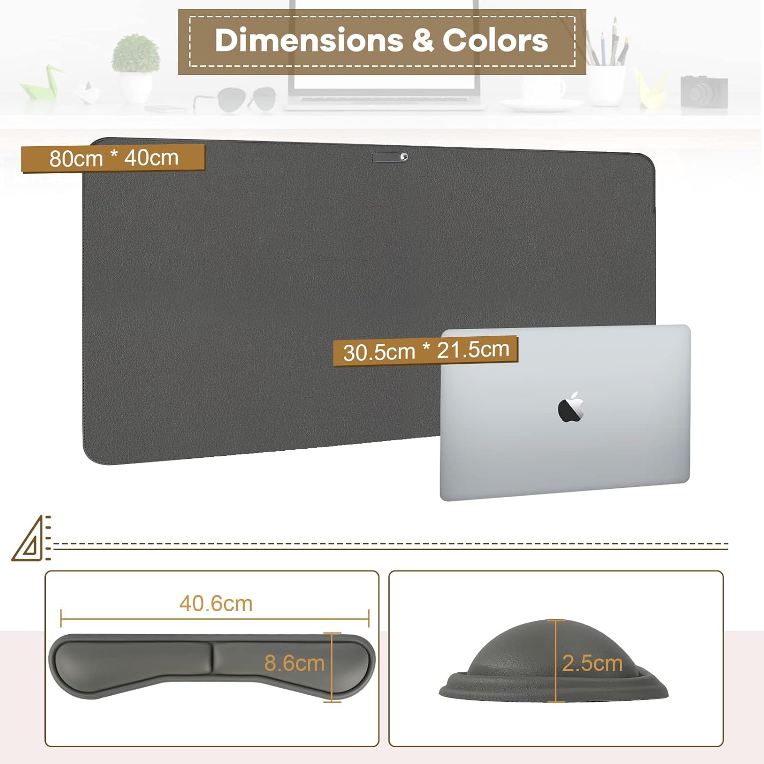 AECCN Leather Desk Mat and Keyboard Wrist Rest Set - Premium PU Office Desk Pad Protector & Ergonomic Wrist Rest with Gel Wrist Support Pad for Home Office Accessories(Truffle Grey 80 X 40 cm)