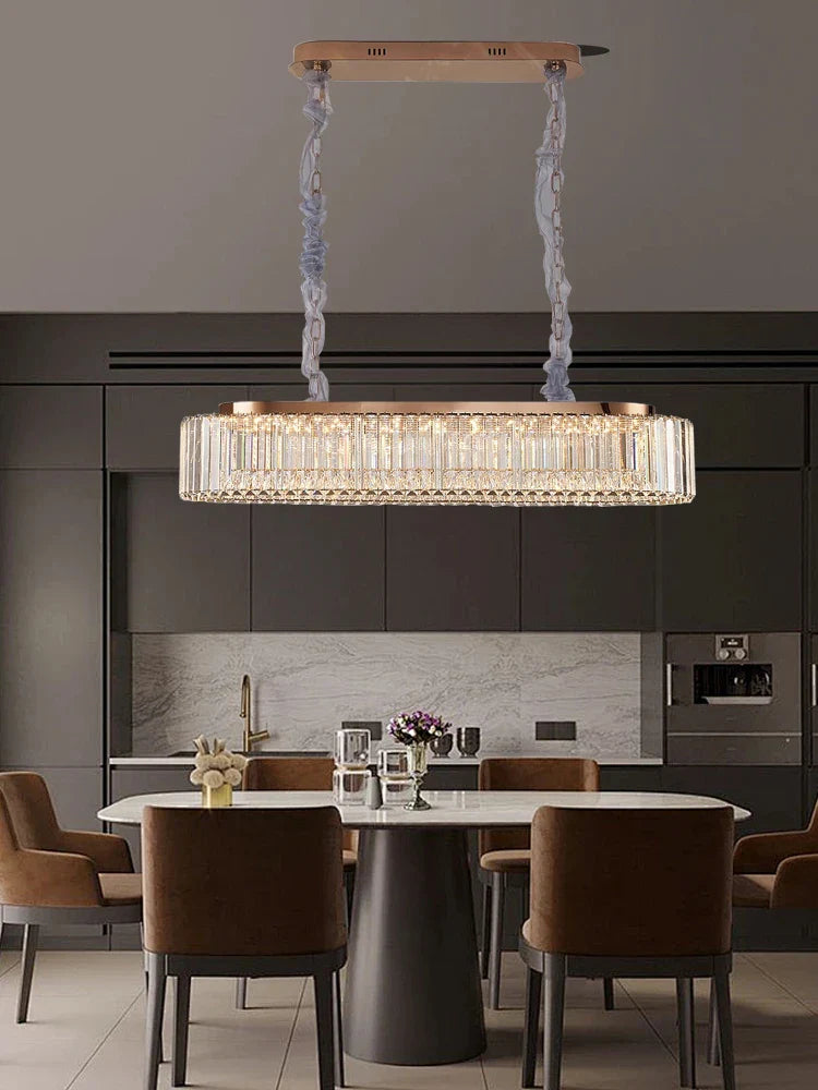 Elevate your dining experience with this stunning postmodern crystal chandelier, blending luxury and modernity in perfect harmony. Designed as a statement piece for your dining room, this LED hanglamp features prismatic crystal accents that refract light into dazzling patterns, creating a sophisticated ambiance. Its sleek metallic frame and geometric design complement contemporary, glam, and minimalist interiors, making it ideal for homes, upscale restaurants, or boutique hotels.
