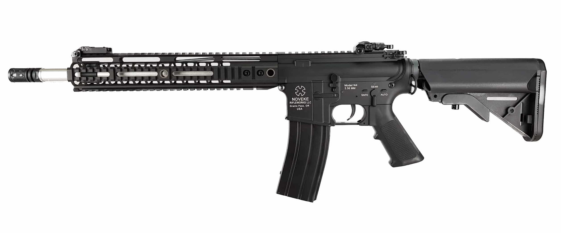 The E&C Noveske AEG has a full metal body along with full laser engraved trademarks, the bolt catch functions giving you the ability to adjust your hop on the fly without having to hold the charging handle back! As usual for all of E&C's other RIF's, the Noveske has an overbuilt gearbox and top-tier build quality. It comes equipped with a 12.5" handguard covered in 20mm Picatinny ready for any accessories you want to attach.