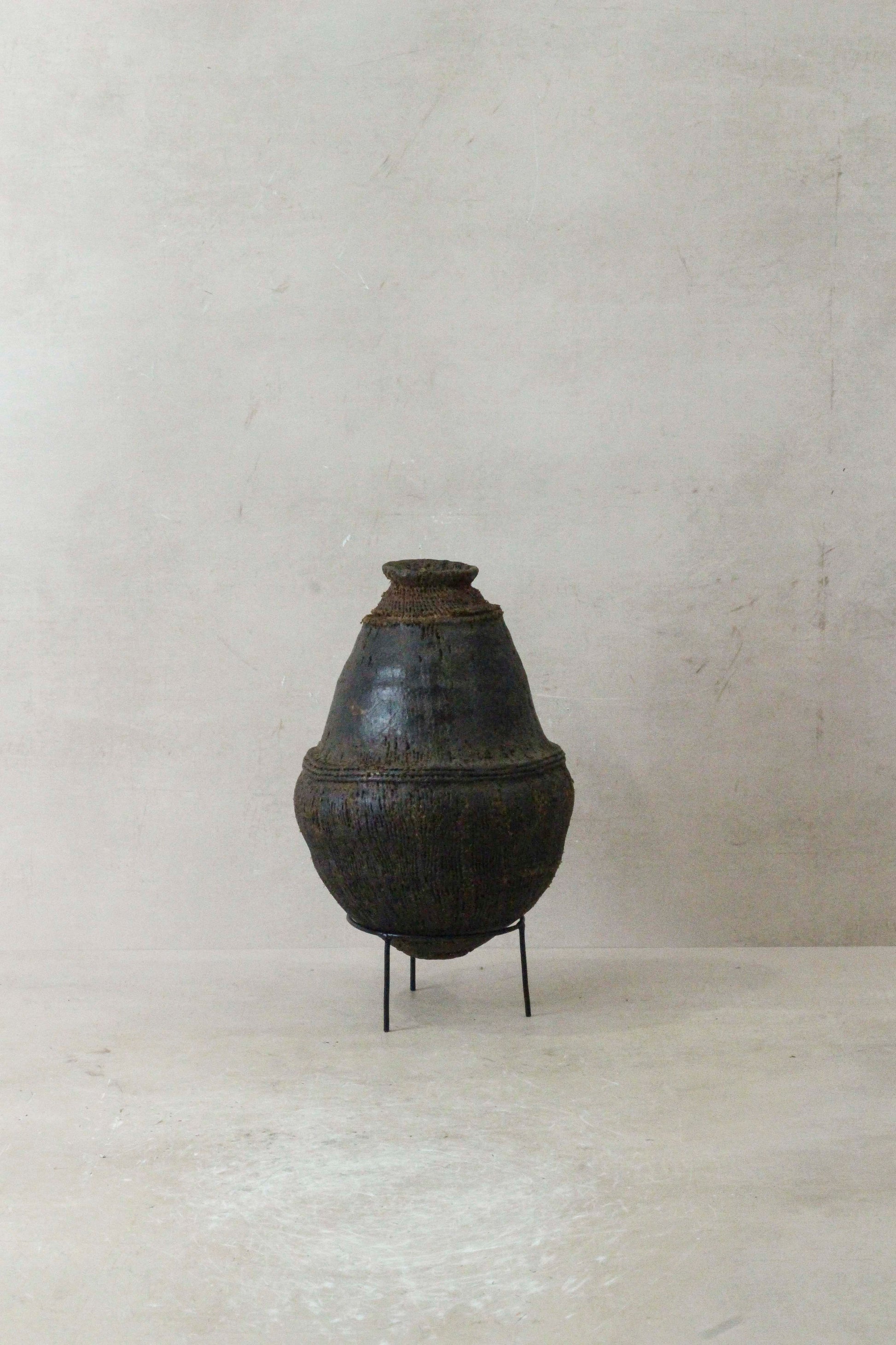 This antique Ethiopian Cho Cho basket is hand crafted by the Borana people using a combination of wire, rattan and mud. They are used to serve drinks to guests. They make for a beautiful piece of art cones with its own stand.