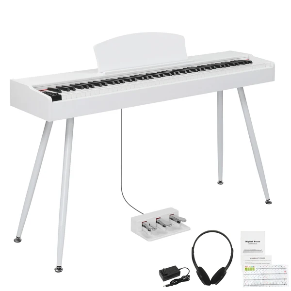 Glarry GDP-203 88 Key Standard Full Weighted Keyboards Digital Piano with Metal Stand, Power Adapter, Triple Pedals,