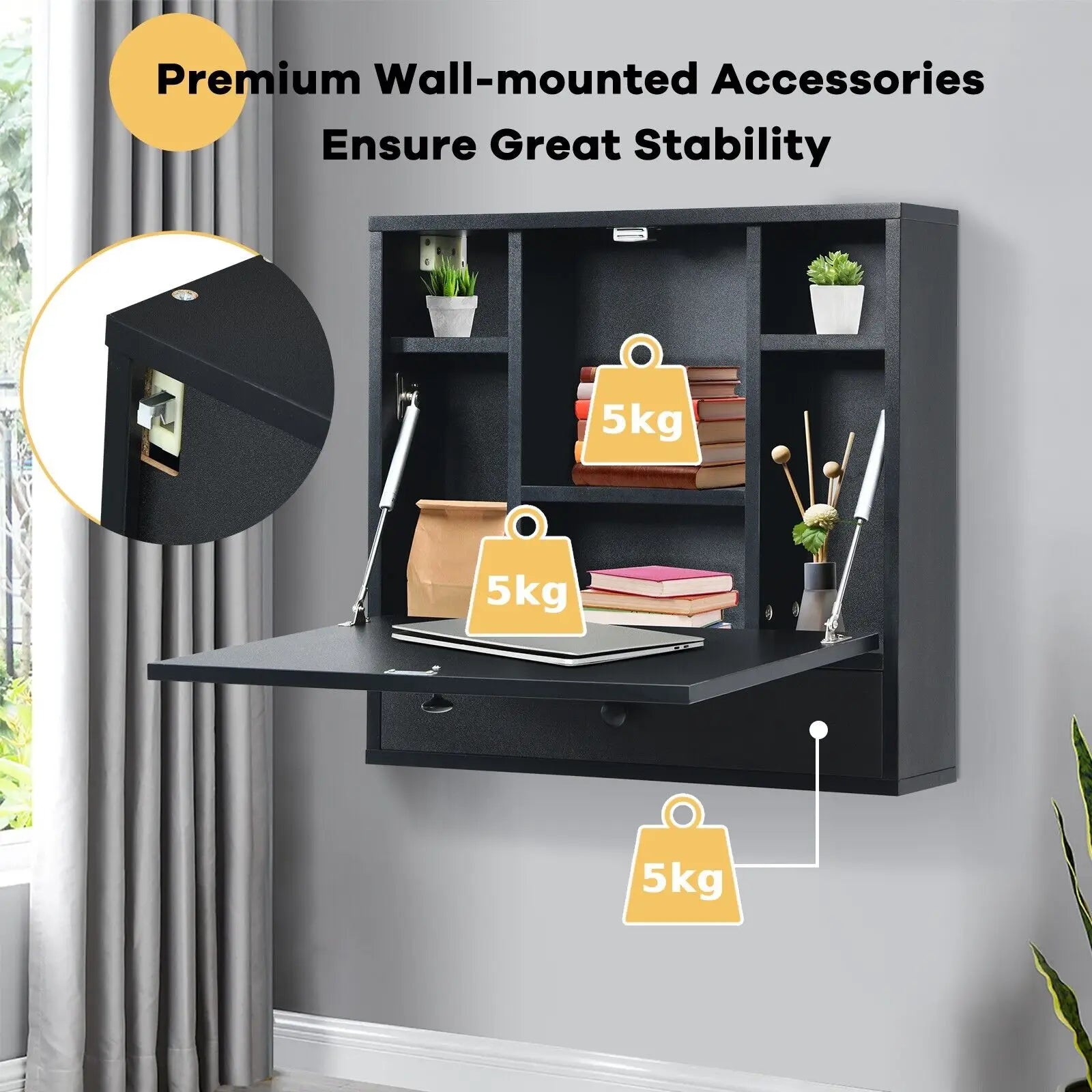 GOFLAME Wall-mounted Drop-leaf Table Folding Floating Laptop Desk Workstation Space Save