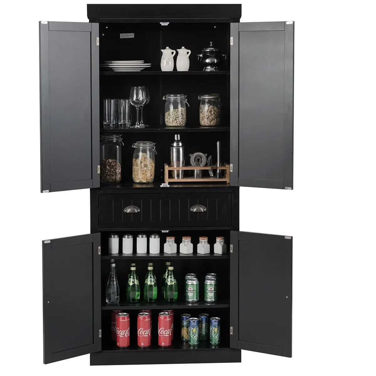 GOFLAME Wood Tall Storage Cabinet 2 Doors Display Organizer Freestanding Pantry Cupboard