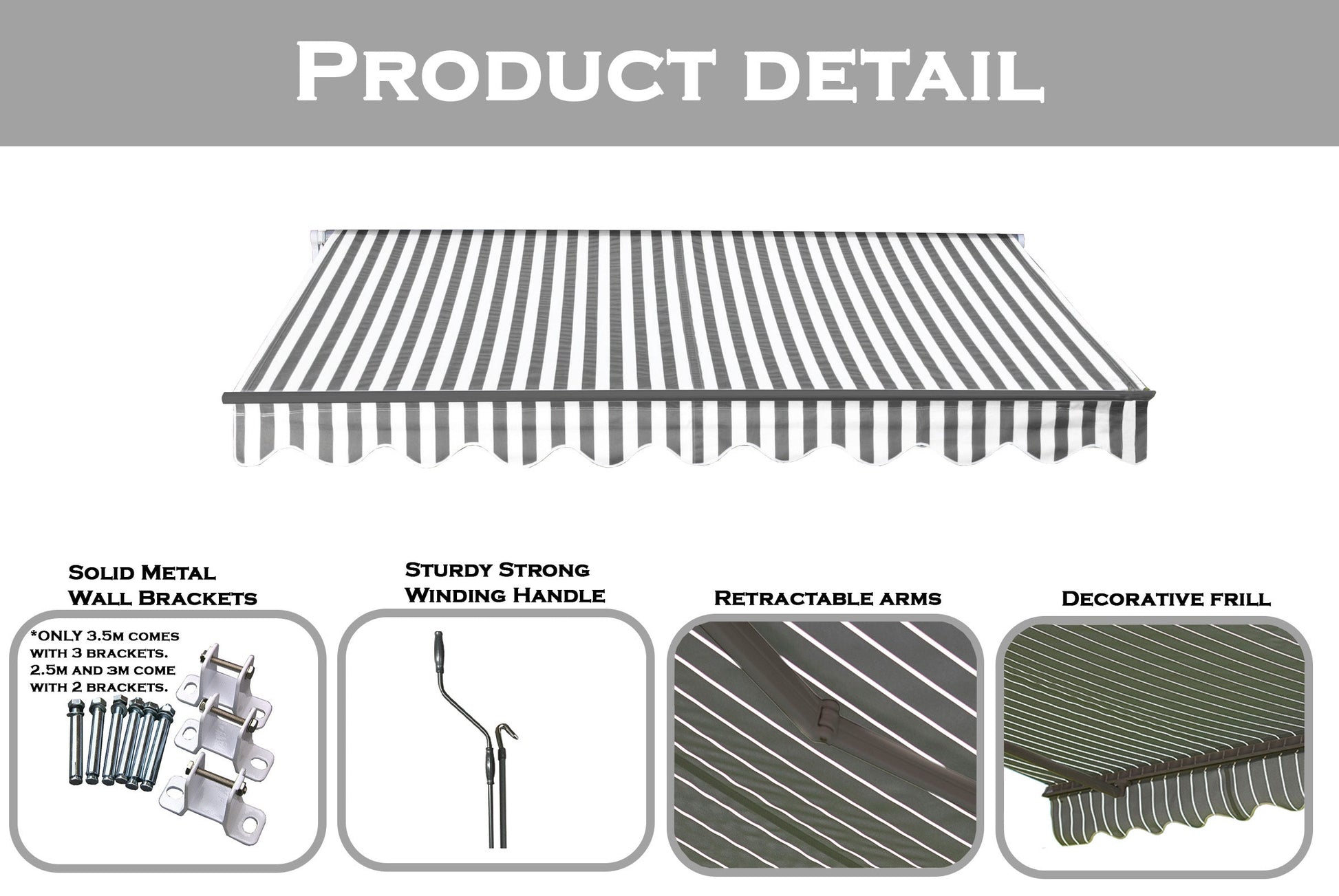 Effortlessly extend or retract the canopy using the detachable winding handle, and when not in use, the awning can be easily removed from its wall brackets for compact winter storage. The Kensington Awning combines elegance with everyday practicality—ideal for sunny days, outdoor dining, and relaxing in style.