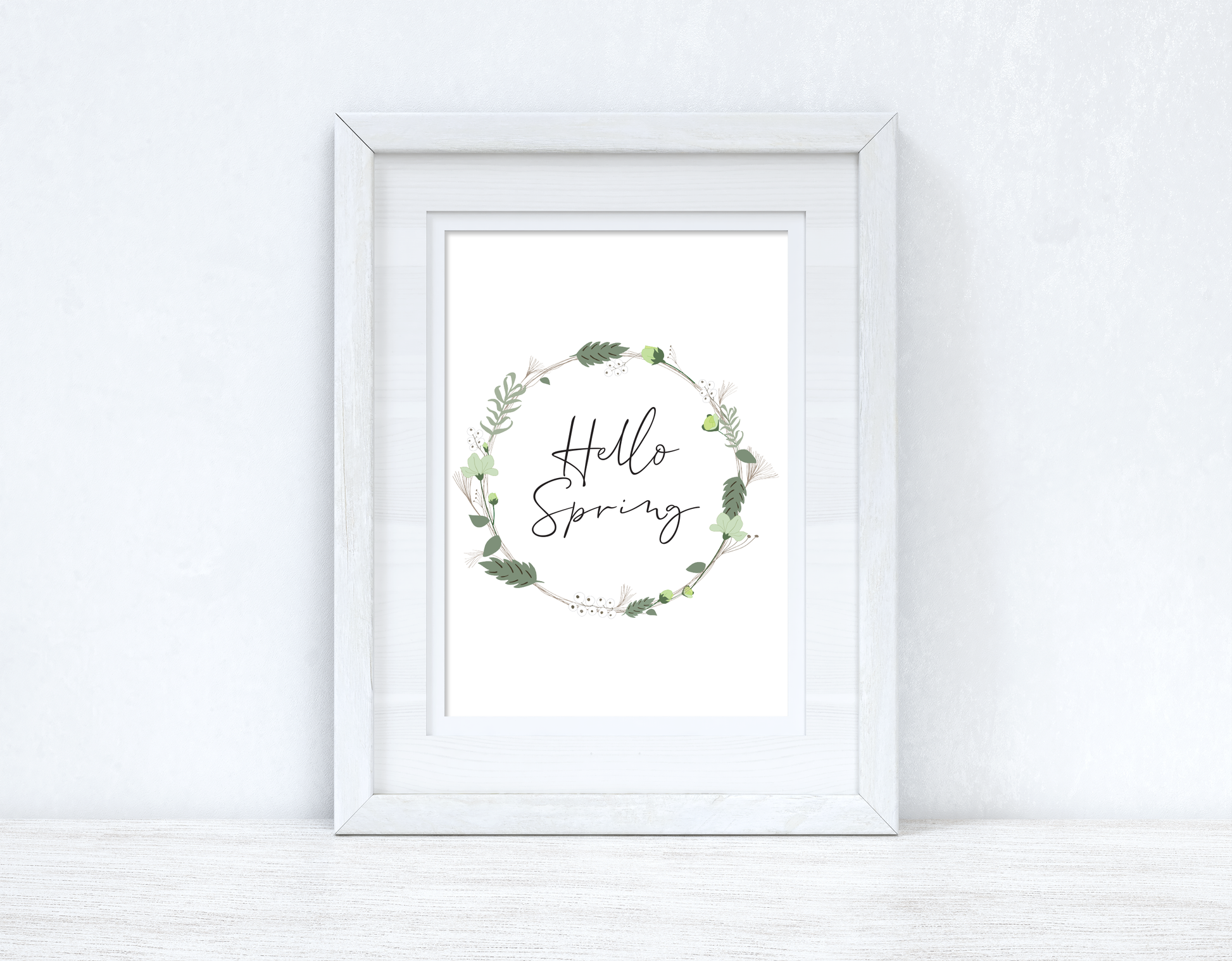 Hello Spring Green Floral Wreath Spring Seasonal Wall Home Decor Print