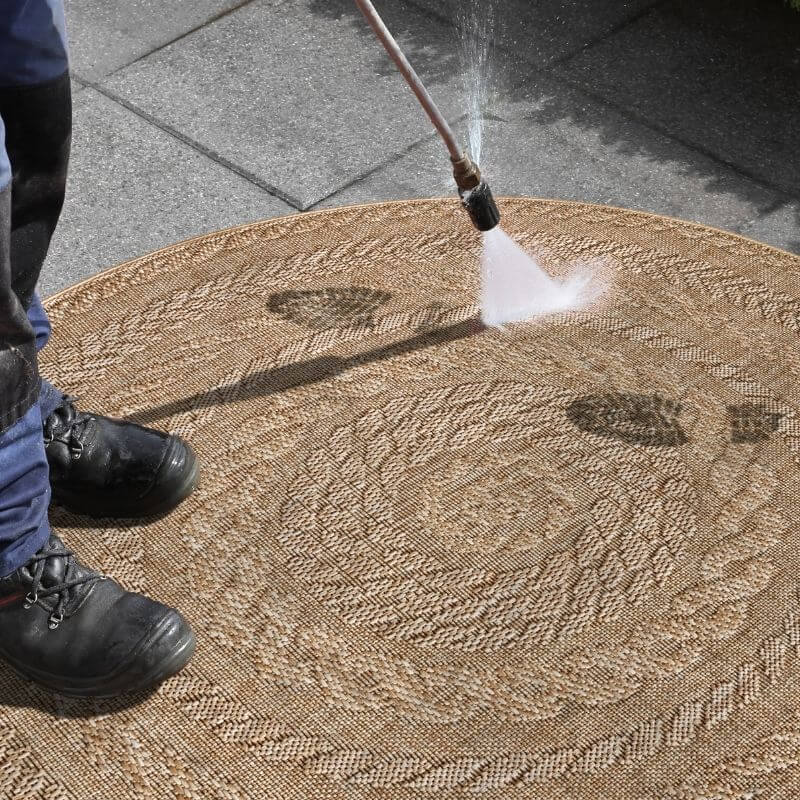 Built as a true all-rounder, the Almendro rug is weather-resistant, durable, and suitable for both indoor and outdoor use. It lays flat quickly after unpacking and works well on all floor types, including underfloor heating. Cleaning is simple—stains can be easily removed with a damp cloth, making this rug a practical choice for high-traffic or spill-prone areas like patios, kitchens, or living rooms.