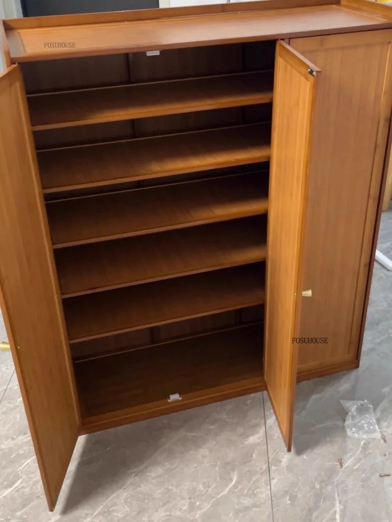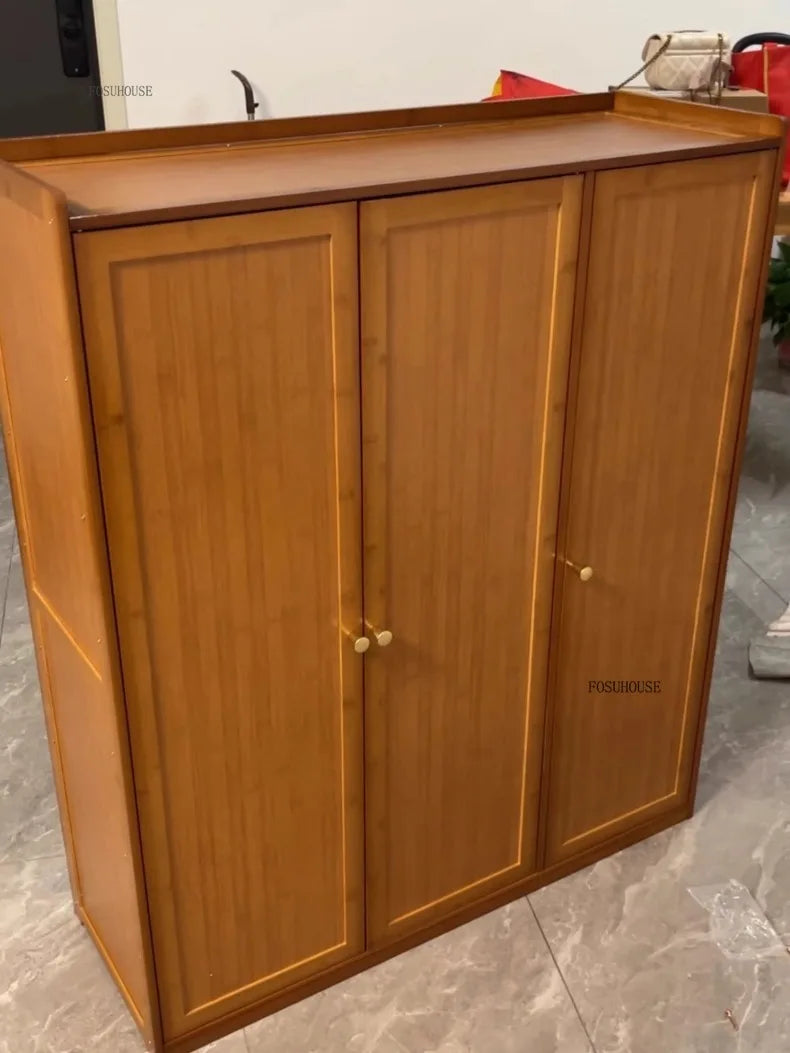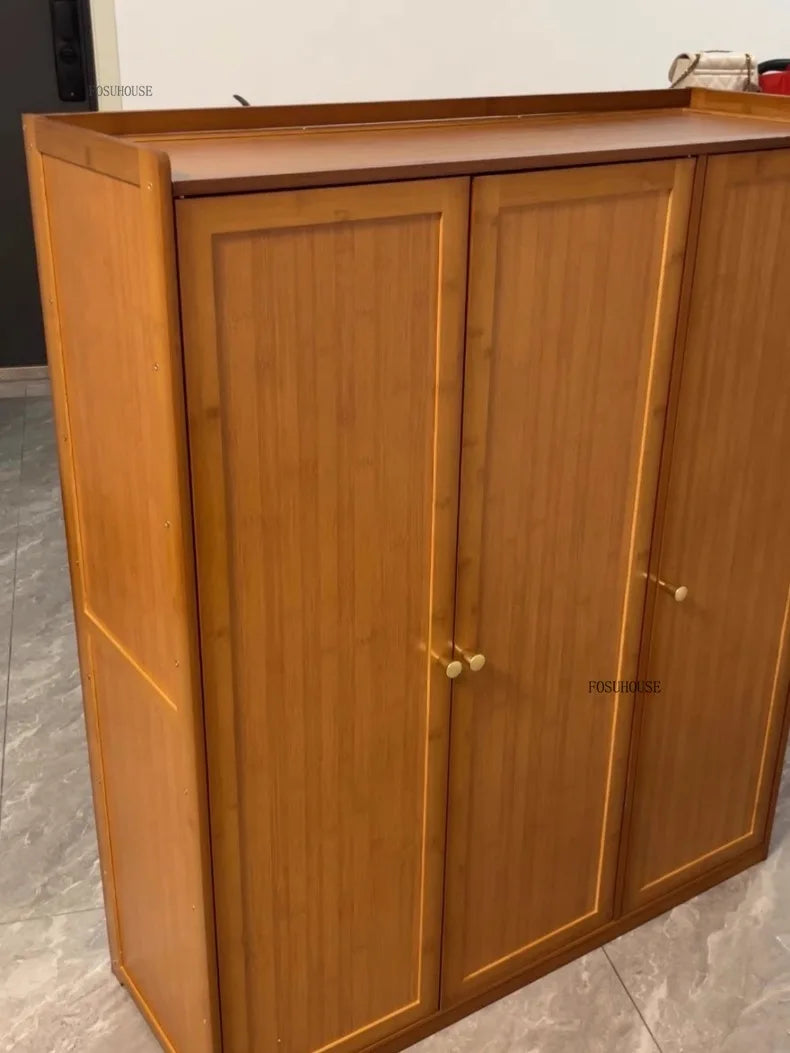 Japanese Bamboo Shoe Rack Indoor Multi-layer Dustproof Shoe Organizers Furniture Imitation Rattan Weave Cabinets for Living Room