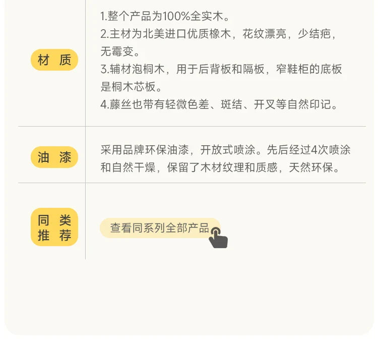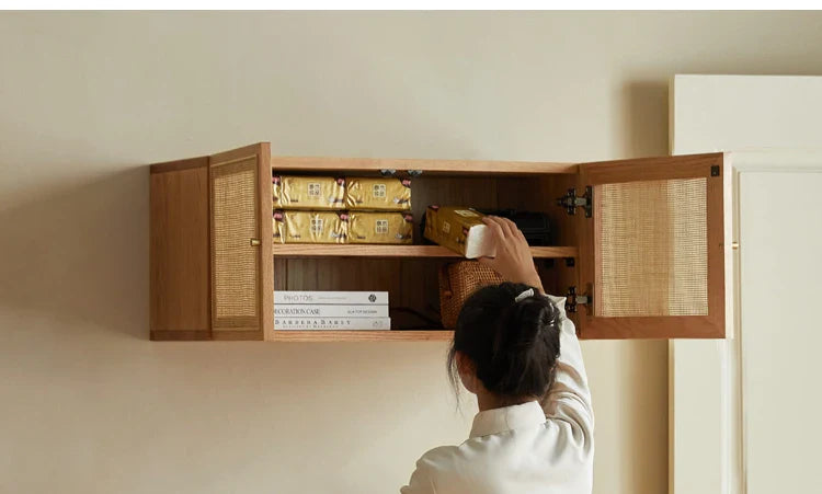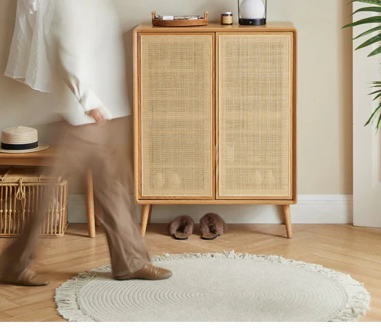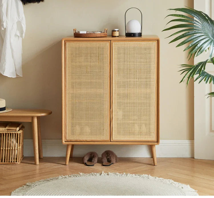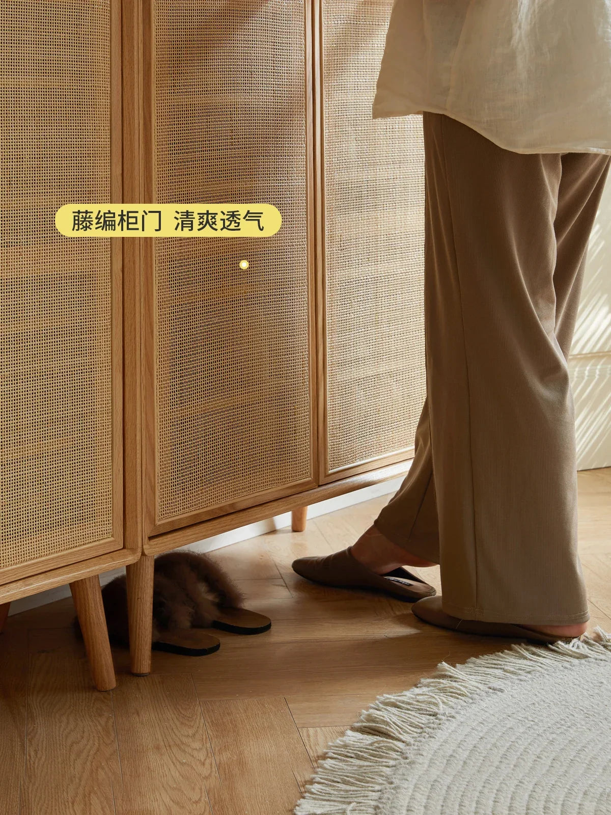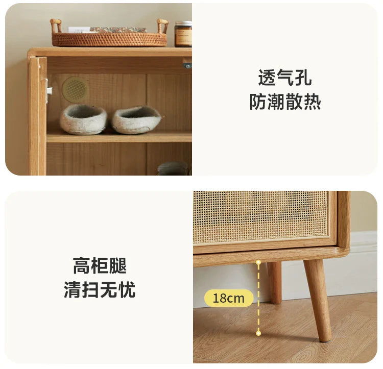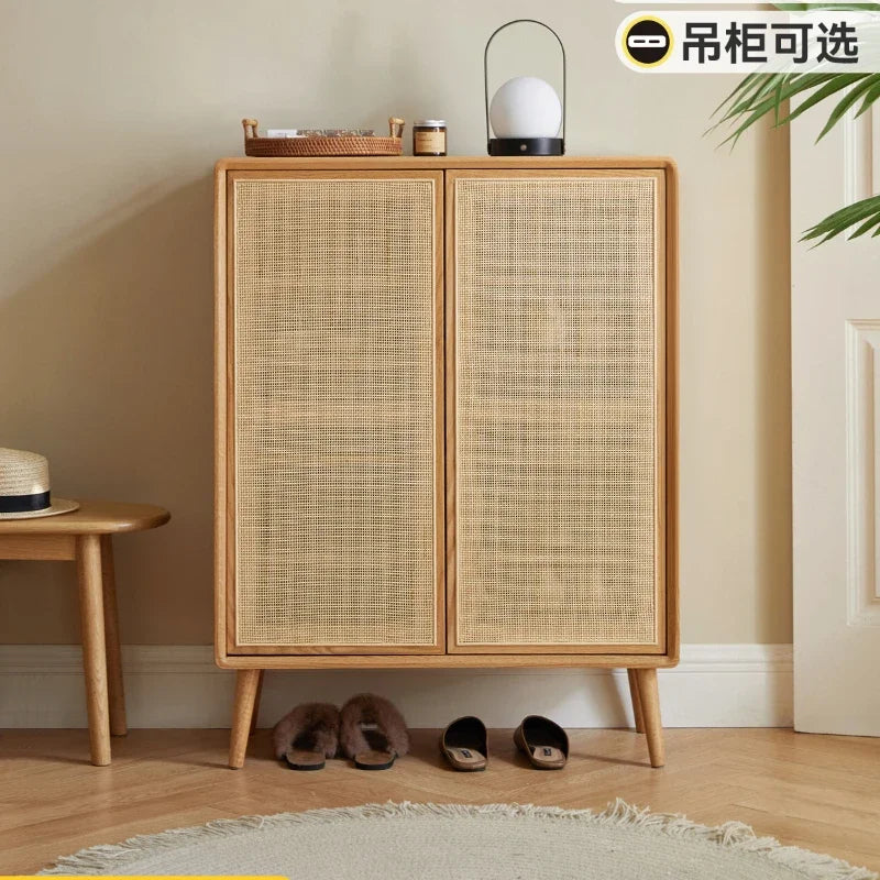 Japanese-Style Solid Wood Double-Door Rattan Shoe Cabinet Imported Oak Simple Modern Bedroom Storage Hall Entrance Cabinet