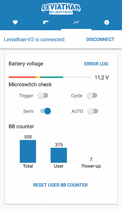 Leviathan - V2 is processor-controlled Mosfet with Bluetooth communication. It adds new shooting modes, controls RoF, pre-cocking, active braking, low battery indication, statistics... everything is controlled via application in the smartphone (iOS and Android). The device is fully integrated inside the gearbox version 2 instead of the original trigger contacts. Comes with completely made wires to stock with 30A mini fuse and T connector - no soldering needed.