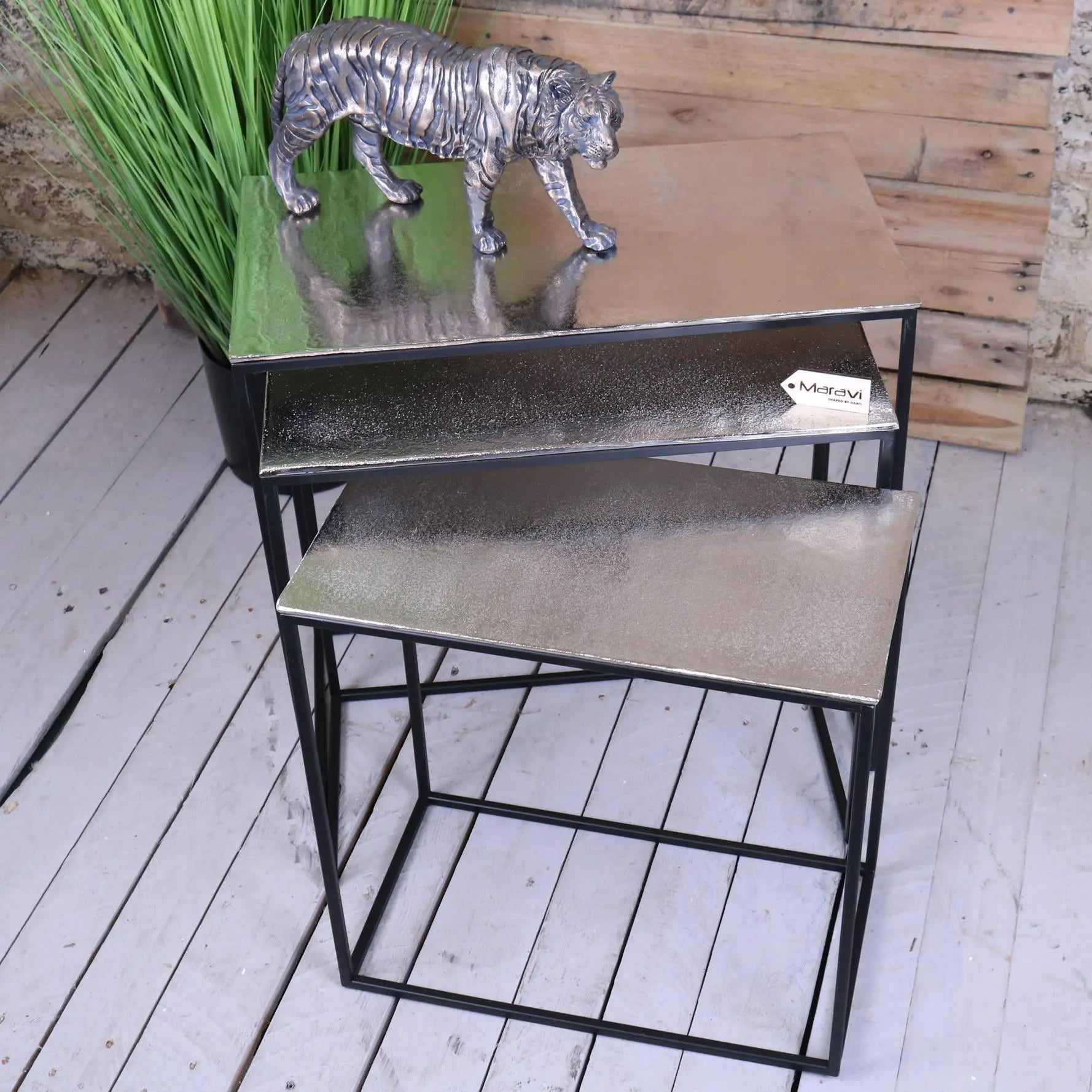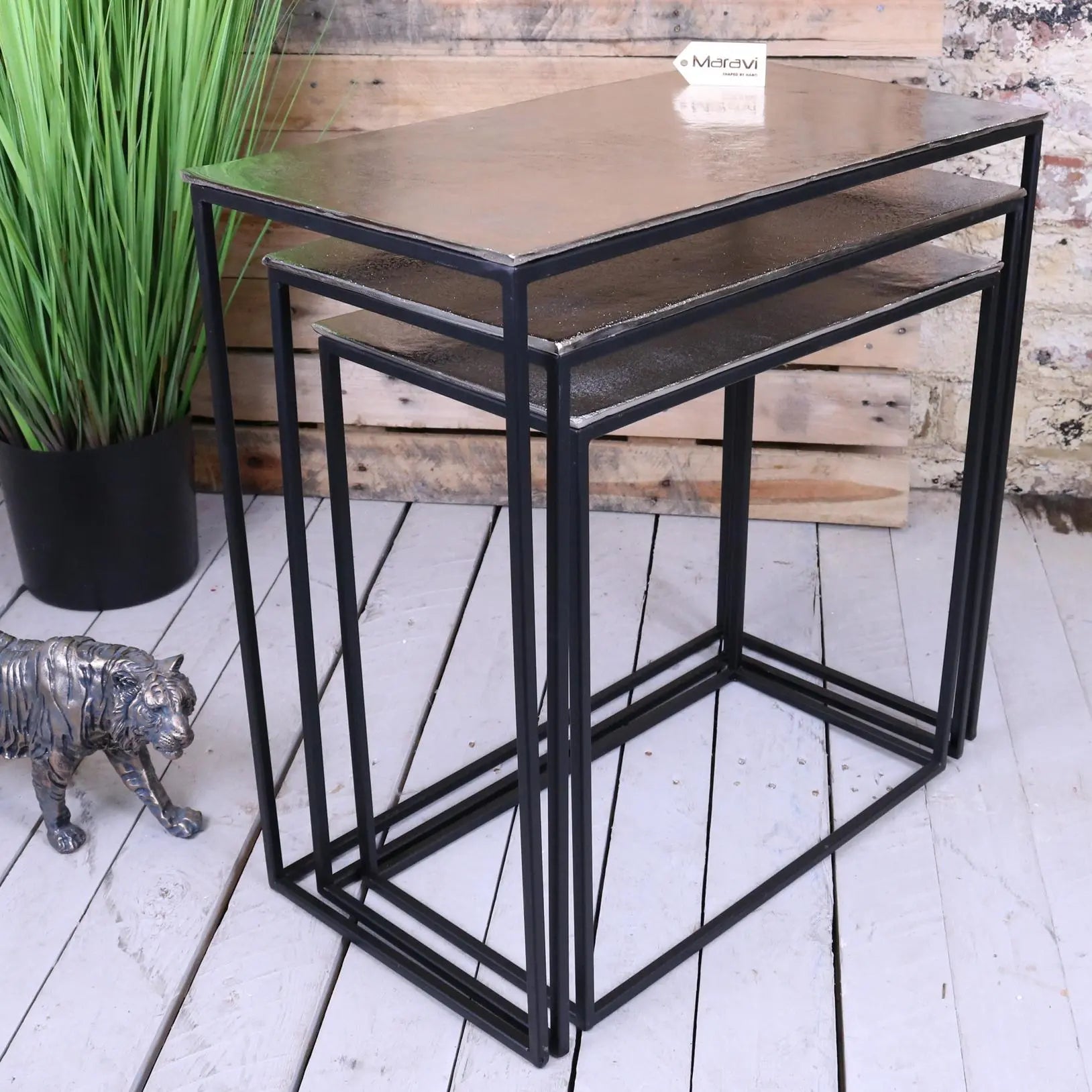 Karari Silver Nest of Tables Rectangular Aluminium Distressed Finish