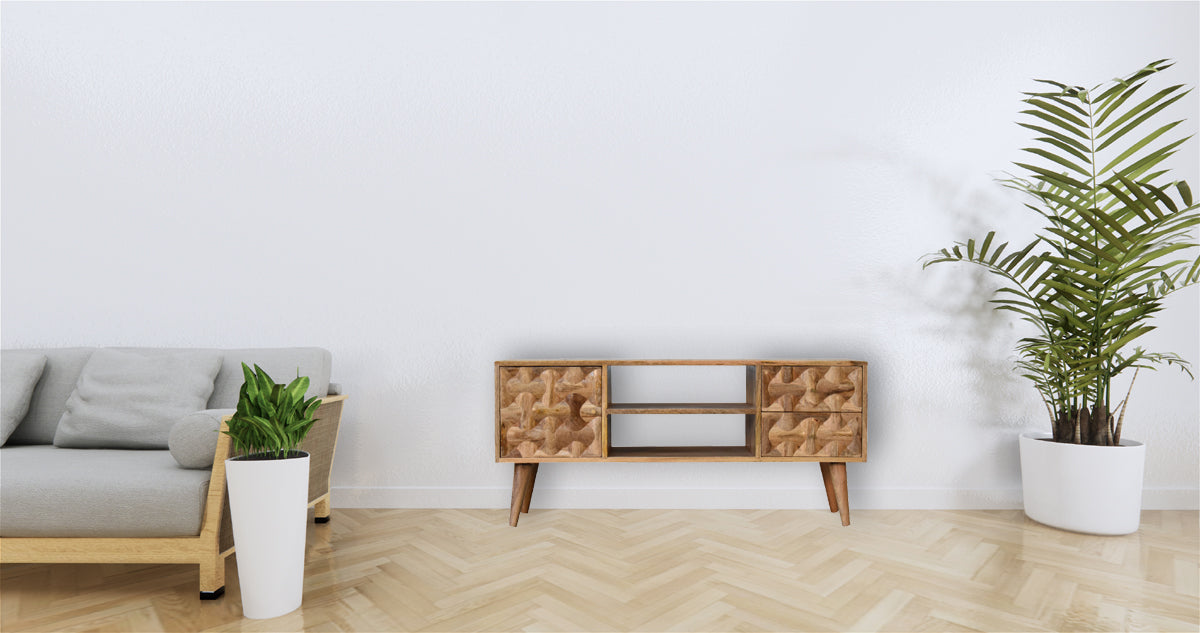 - Two Spacious Drawers: Provides ample storage for media essentials and remote controls.