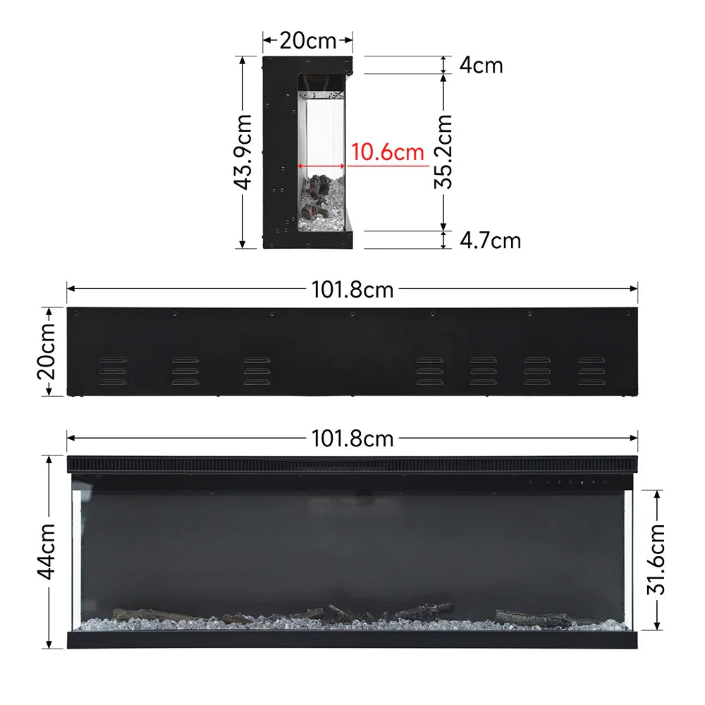 KOMORE Recessed/Freestanding 3-sided Tempered Glass Front Electric Fireplace, 12 Flame Colors, 1500W 40&50 Inch