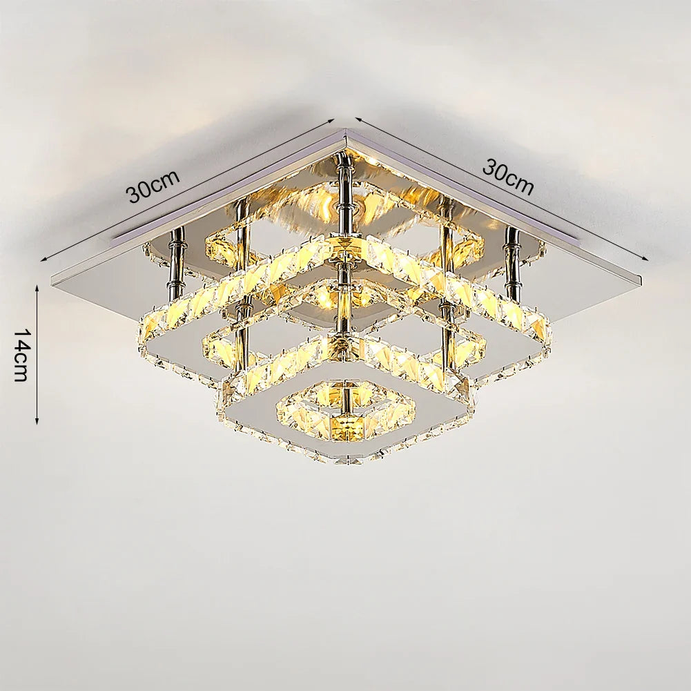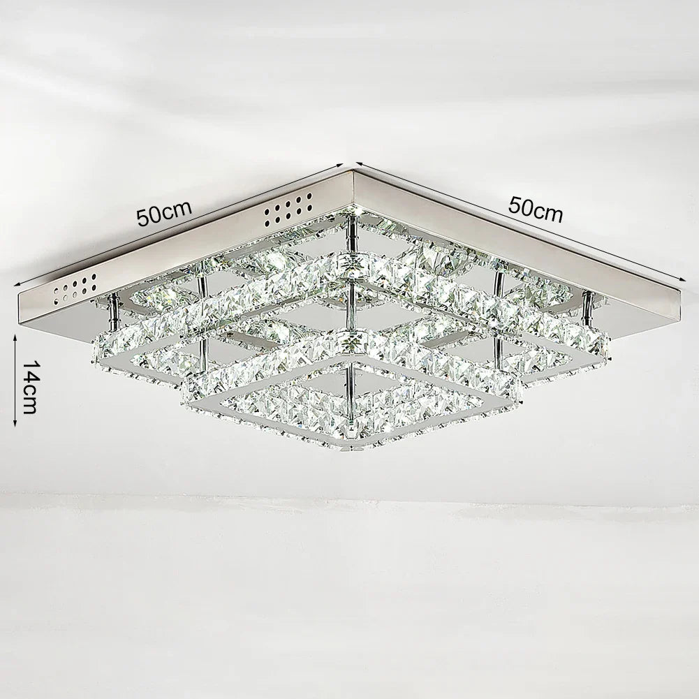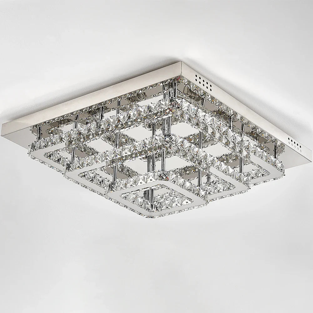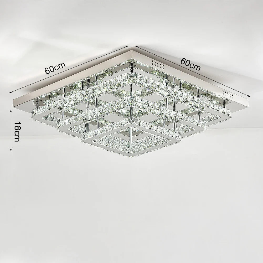 KOMORE Square Multiple-size Glamourous Crystal LED Ceiling Light, Cool White / Stepless Dimming for Office, Living Room, Bedroom
