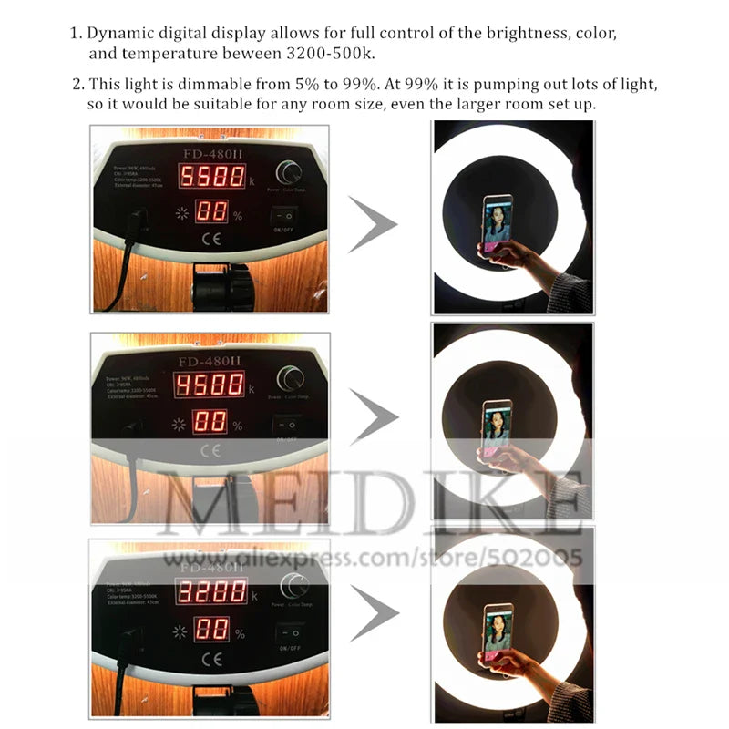 LED Ring lamp FD-480II Beauty Studio LED Ring Light LED lamp Bio-color Video Makeup Lighting + stand (2M)+ bag Photography light