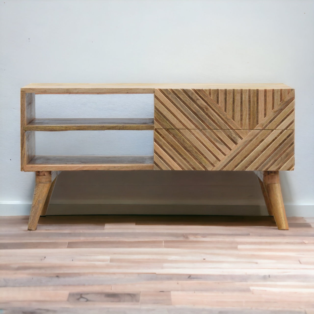 - Storage: Includes two spacious open slots for media devices, enhancing organization.