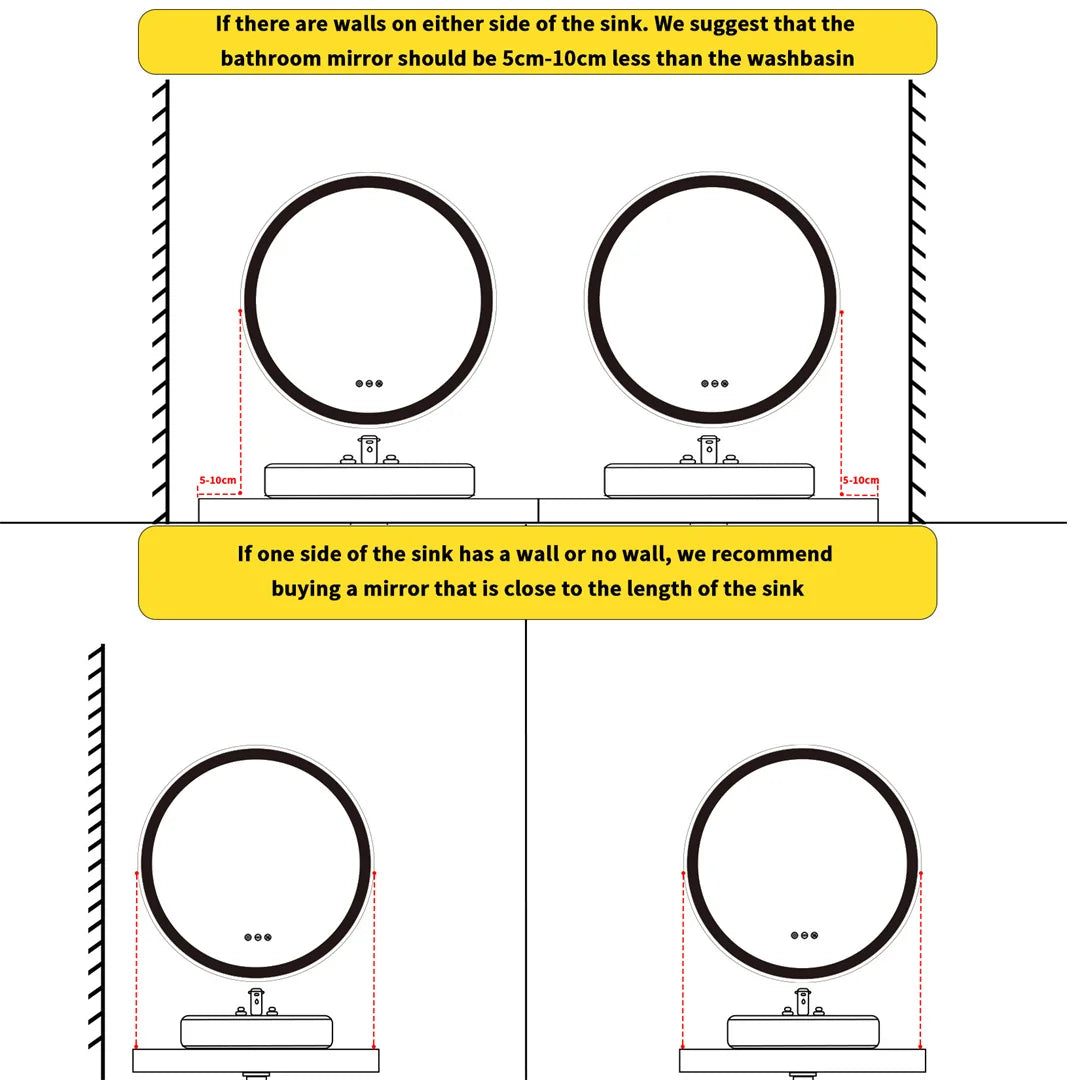 LUVODI 24 Inch Gold Frame Round Bathroom Mirror with Lights Illuminate Wall Vanity Mirror 3 Color Dimmable Anti-Fog Smart Mirror