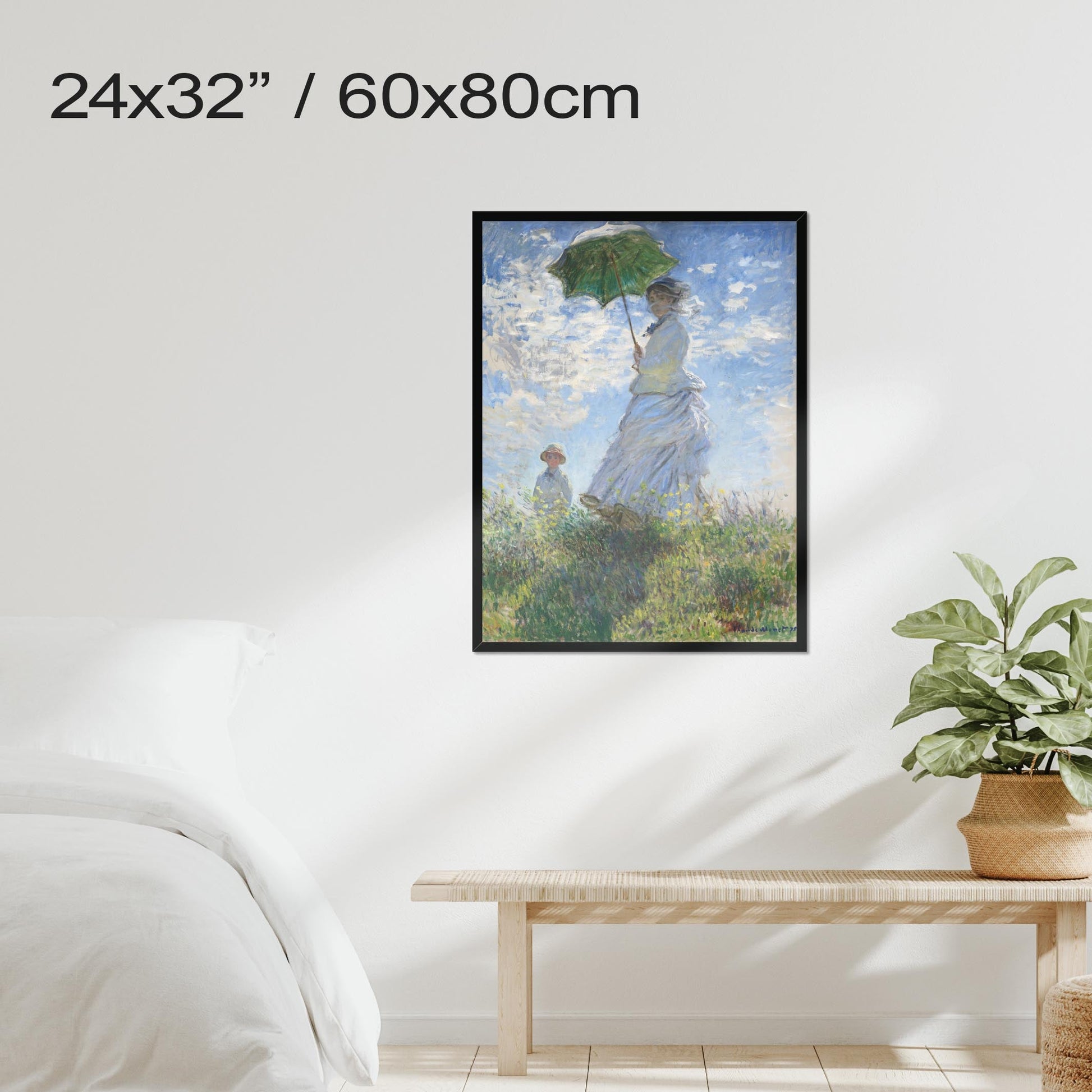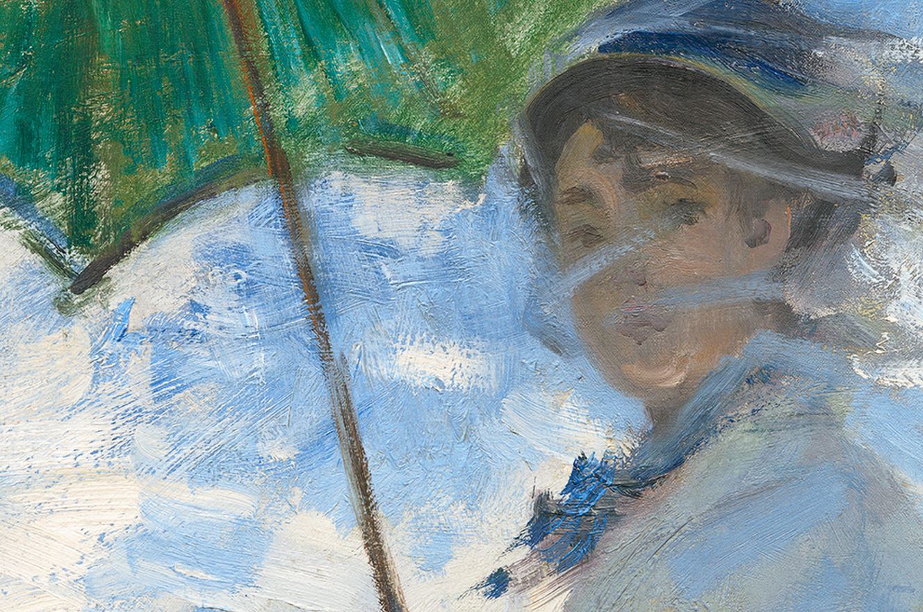 Claude Monet's Madame Monet and Her Son (1875), known as the woman with a Parasol. Original is an oil on canvas and every coarse brushstroke is visible.