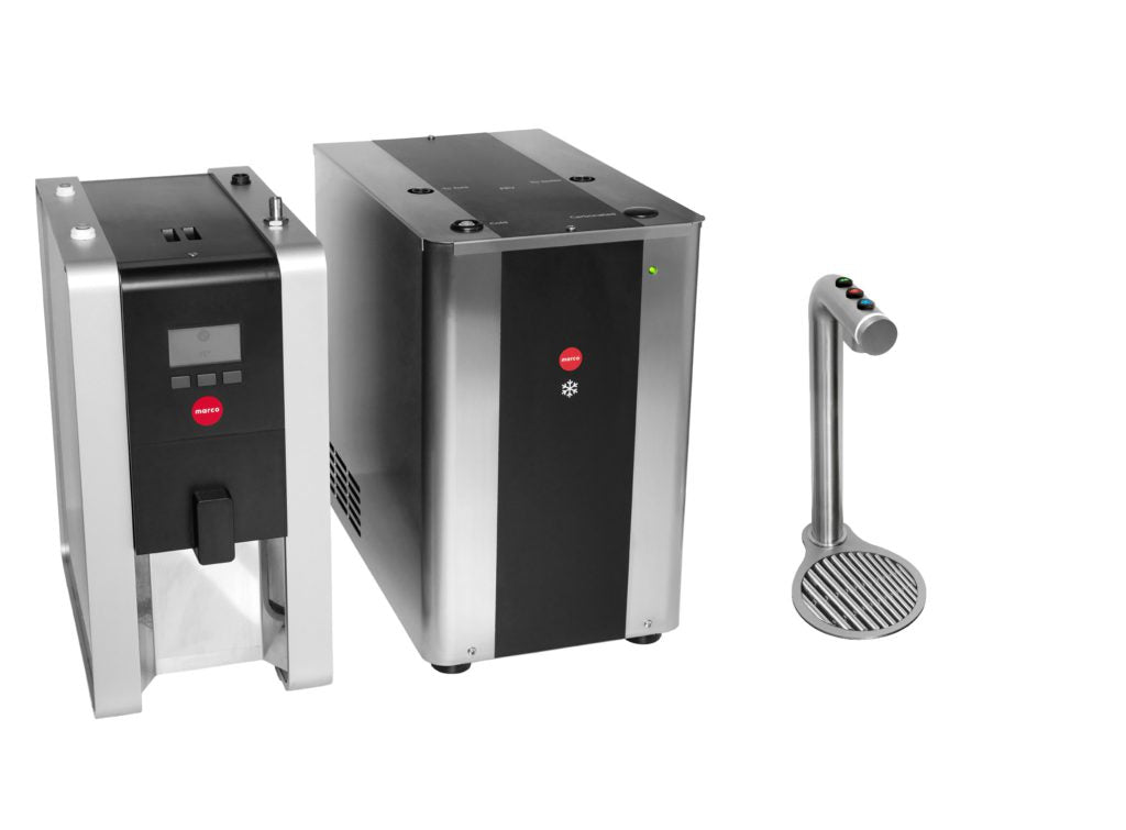 Marco Friia Boiling, Chilled, and optional upgrade to 3 water types including Sparkling Filtered water featuring twin modular under bench command centres including energy saving modes and optional ultra micron water filtration.