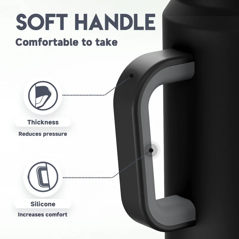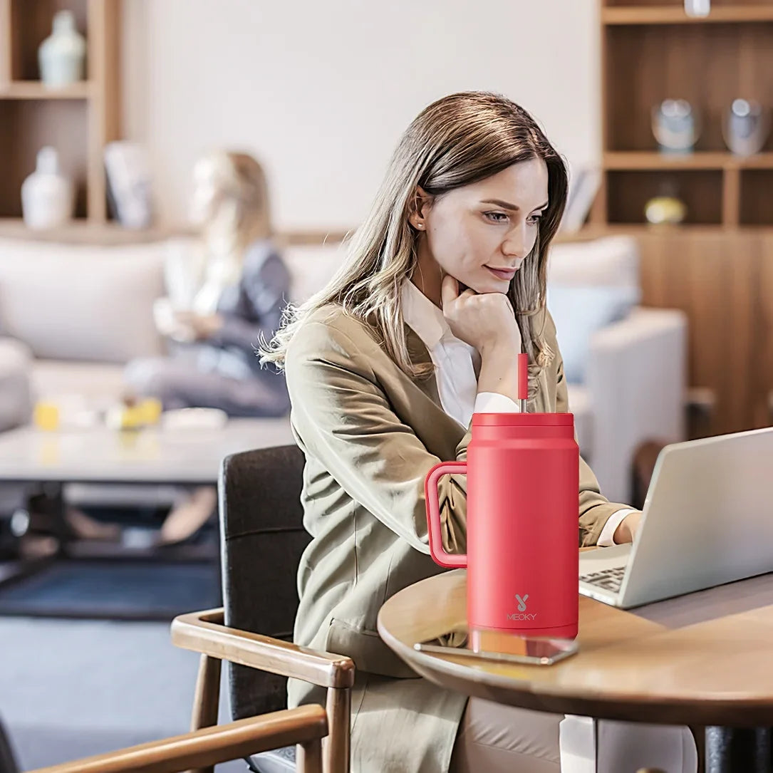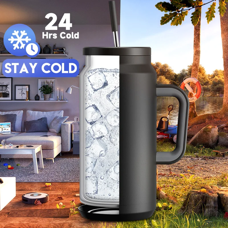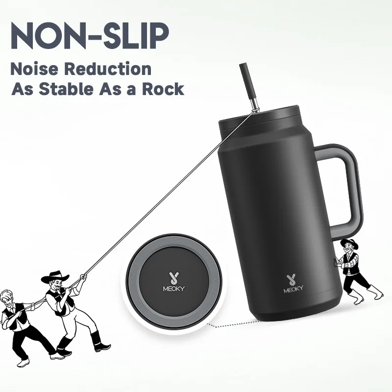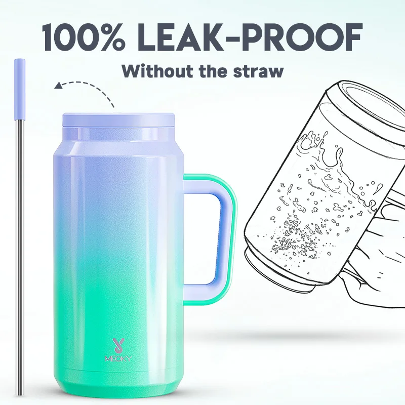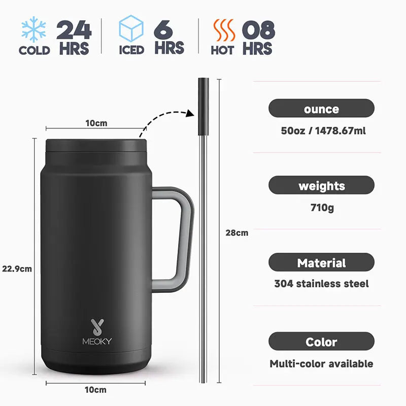 Meoky 50oz Tumbler Handle Straw Insulated Water Bottle Multi-prints Stainless Steel Leak-proof Large Capacity Travel Vacuum Cup
