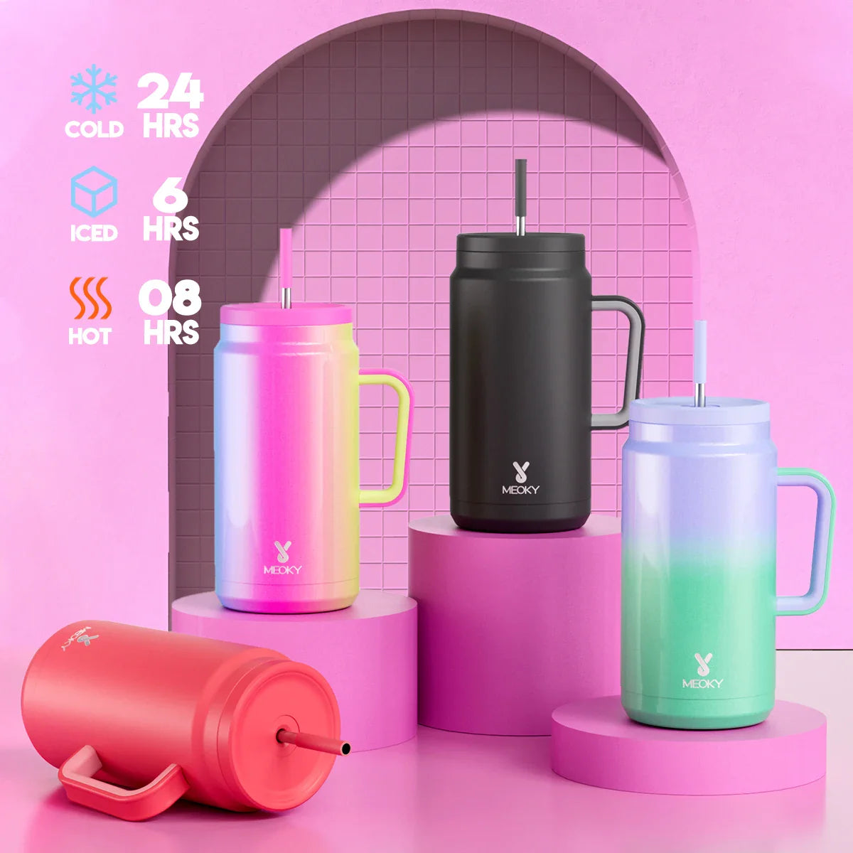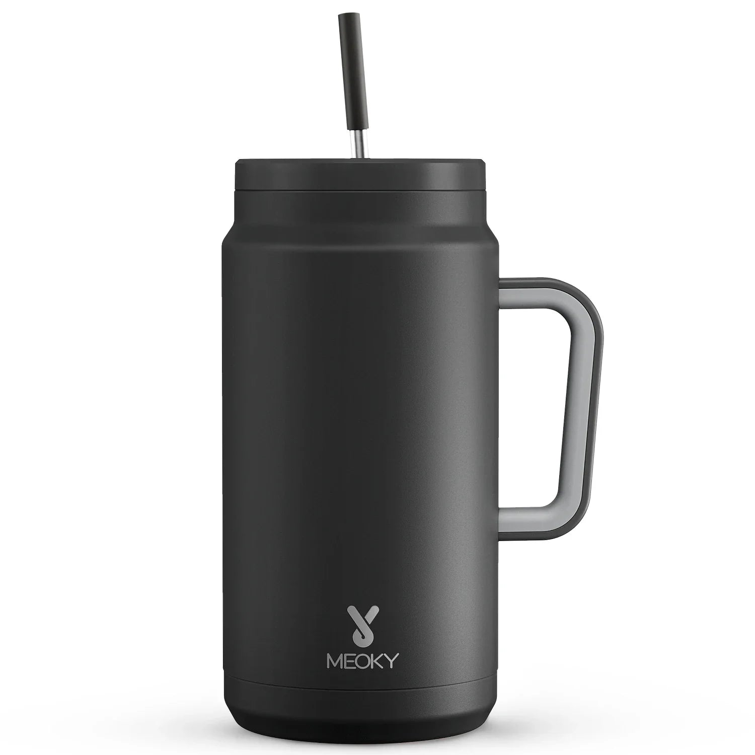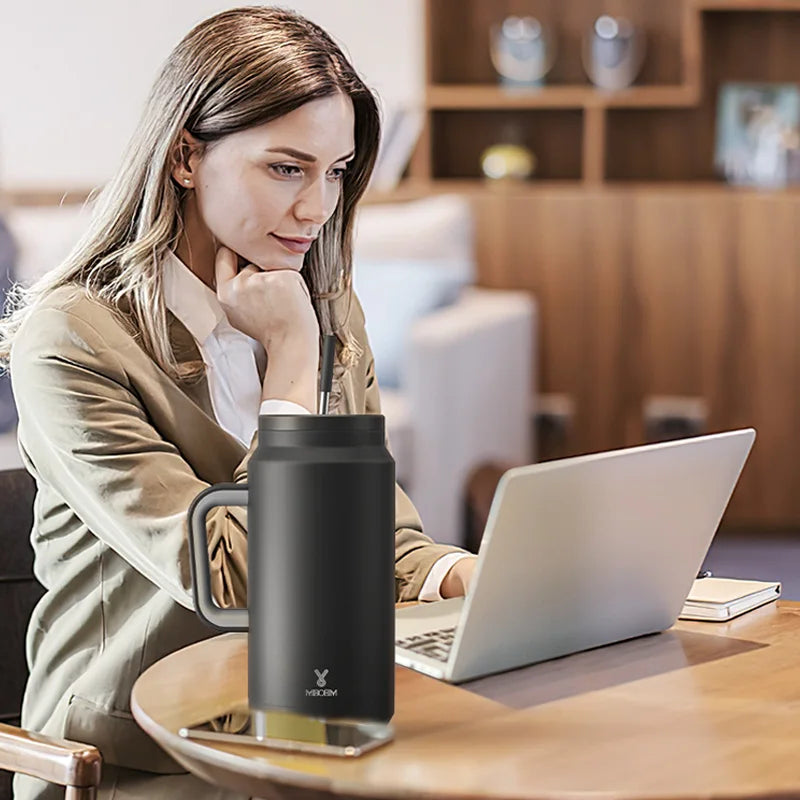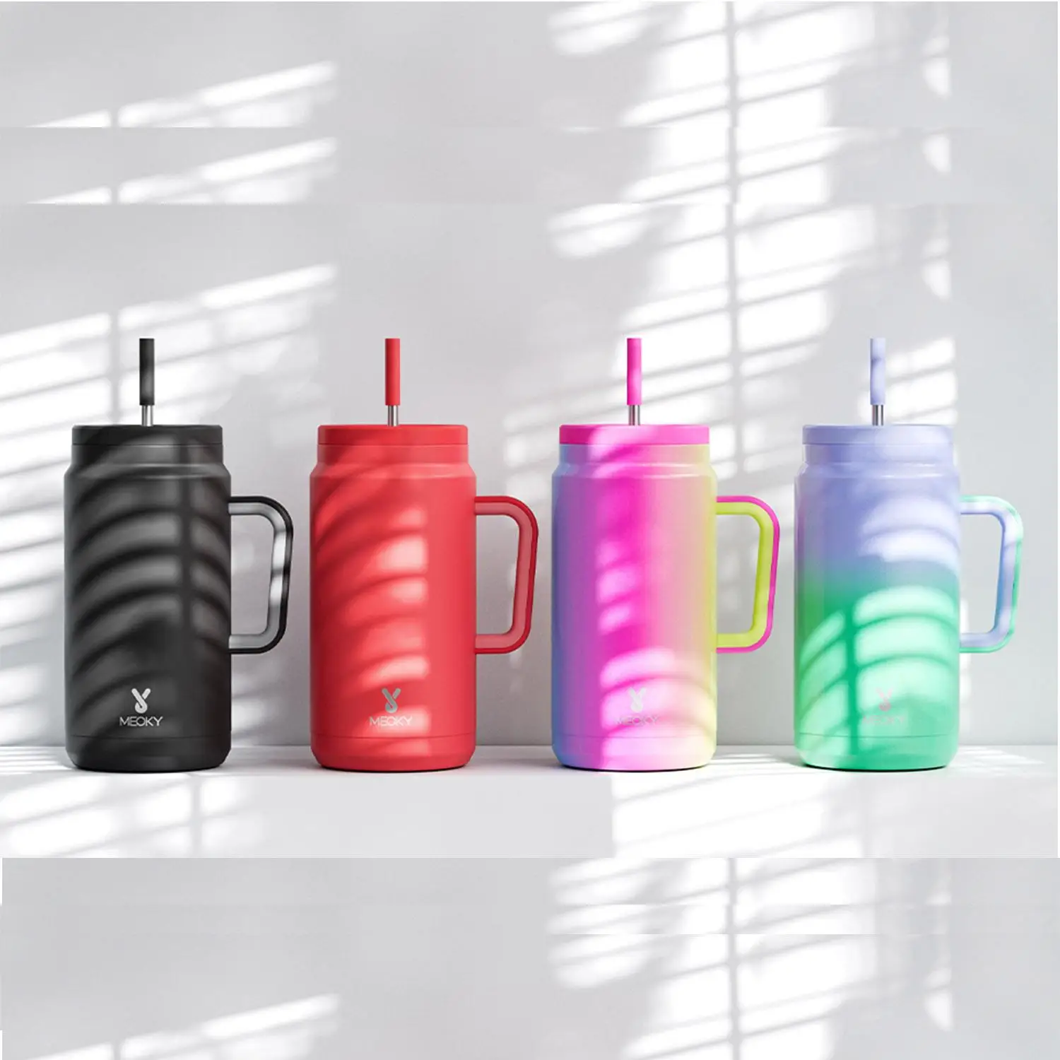 Meoky 50oz Tumbler Handle Straw Insulated Water Bottle Multi-prints Stainless Steel Leak-proof Large Capacity Travel Vacuum Cup