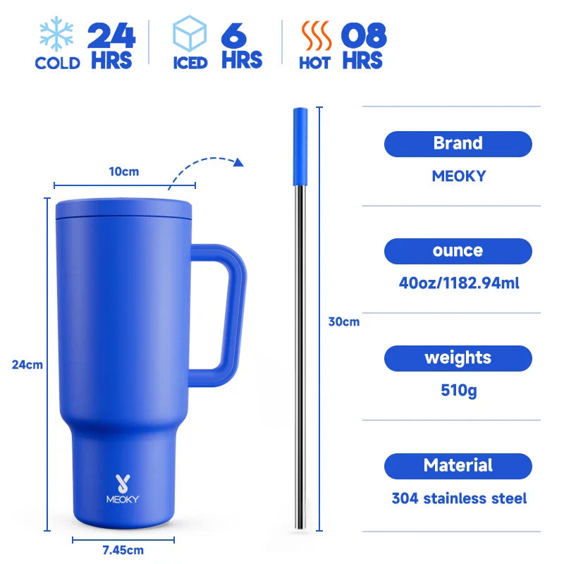 Meoky New 40oz Handle Tumbler Keep Hot Insulation Coffee Cup Multicolor Stainless Steel Leak-proof Car Mug Vacuum Water Bottle Fall Winter