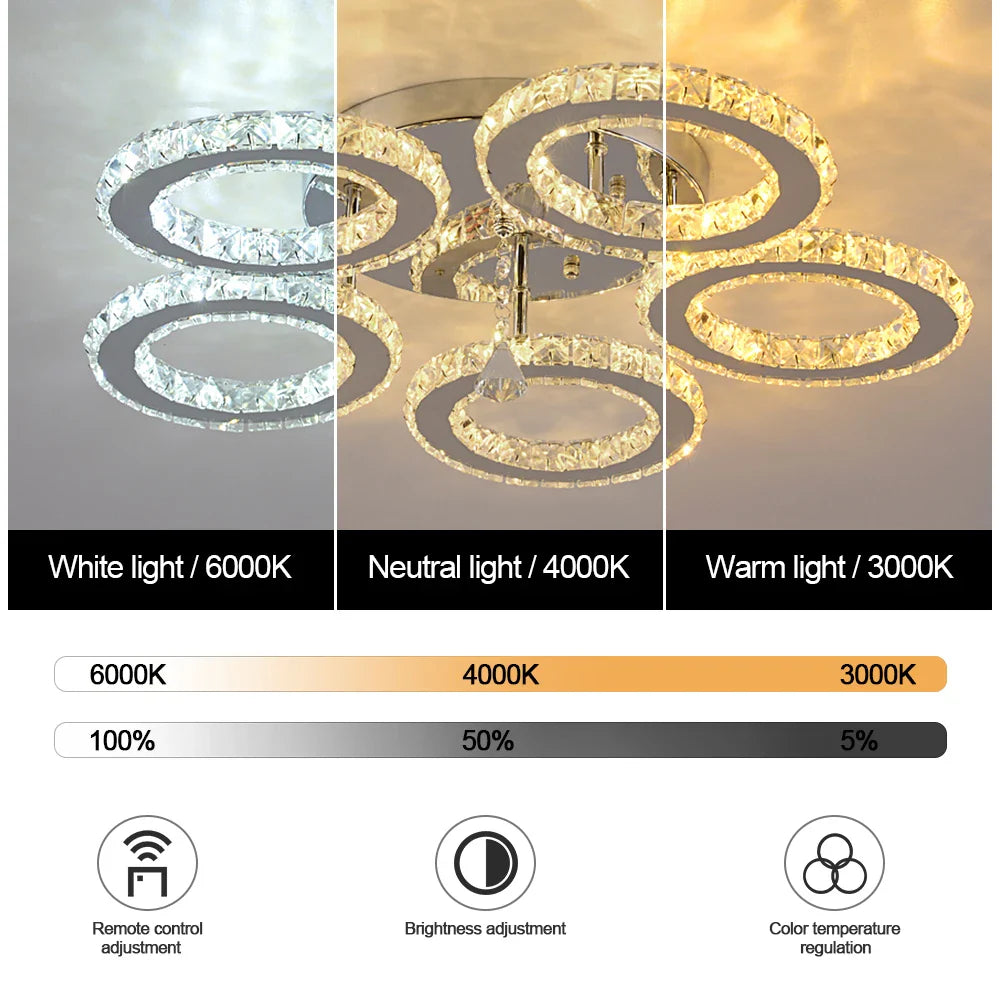 Modern K9 Led Crystal Ceiling Lamp Smart Chandelier Pendant Light Ring Chrome Plafonier Fixture Dining Living Room Decor Luxury