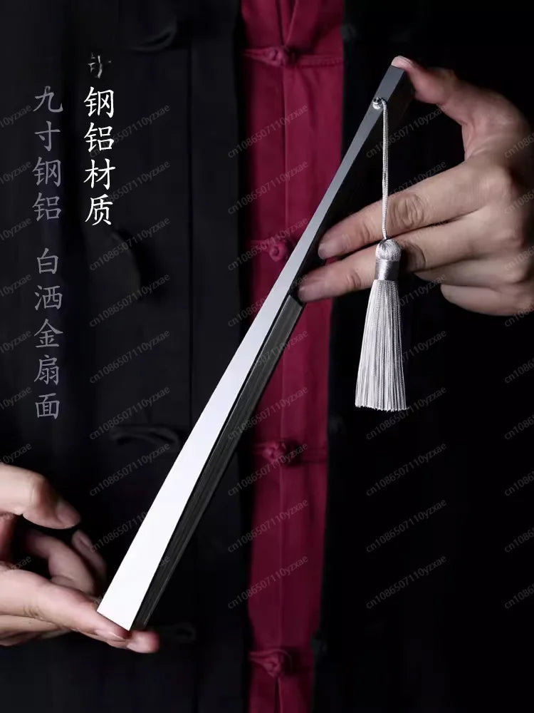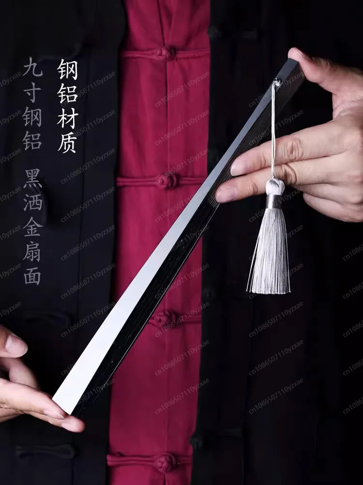 Nine-Inch Daya Titanium Alloy Folding Fan Crafts Antique Portable Xuan Paper Self-Defense Custom Steel Rib Fan Flesh Eater
