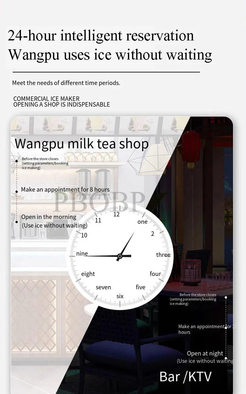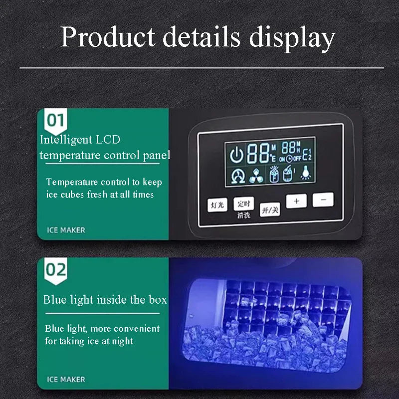 PBOBP 44lbs/24H Electric Ice Maker 11.5kg 25lbs Capacity LCD Control Panel Ice Making Machine for Shop Office EU Plug 220V
