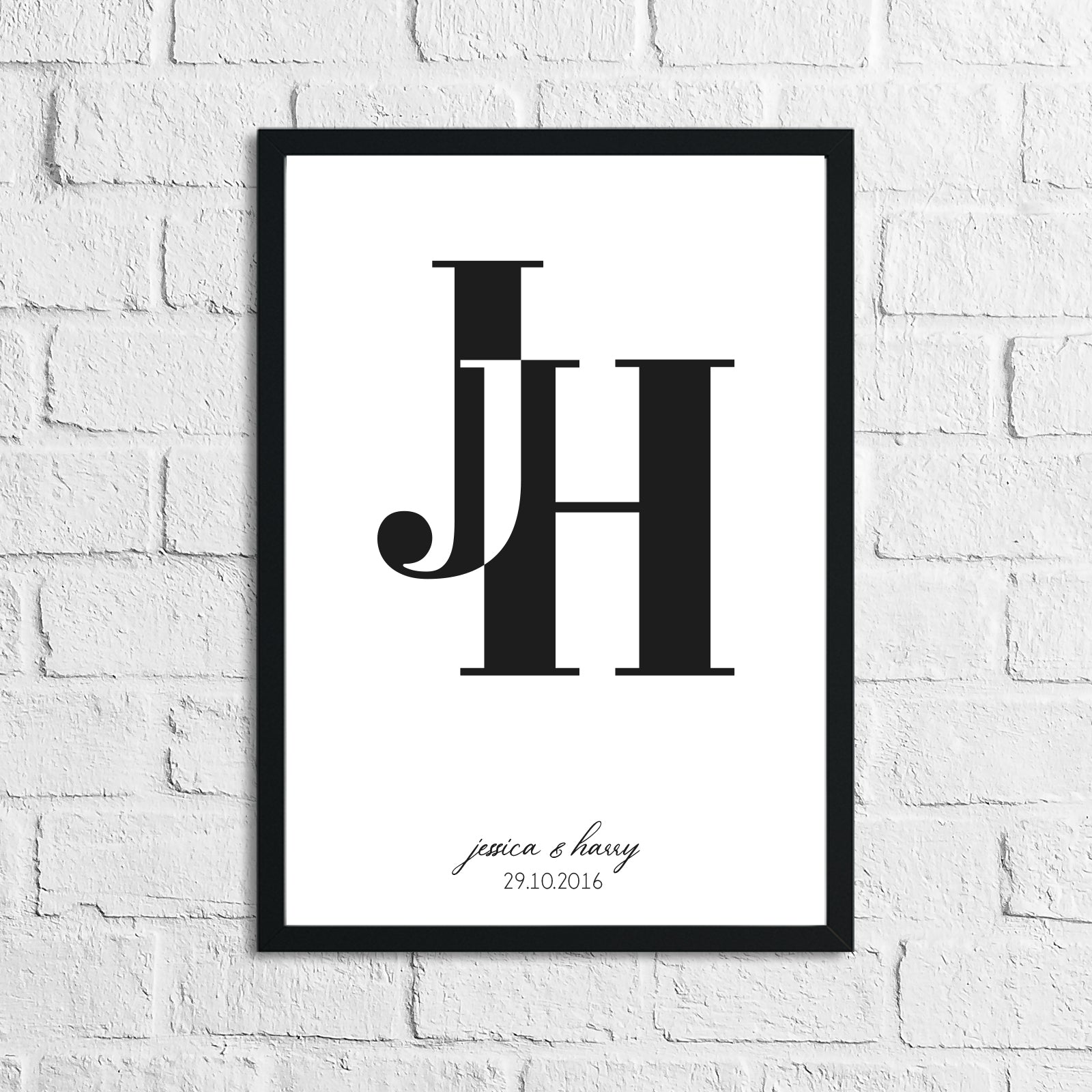 Personalised Black Couple Names Initials Date New Home Wall Decor Print