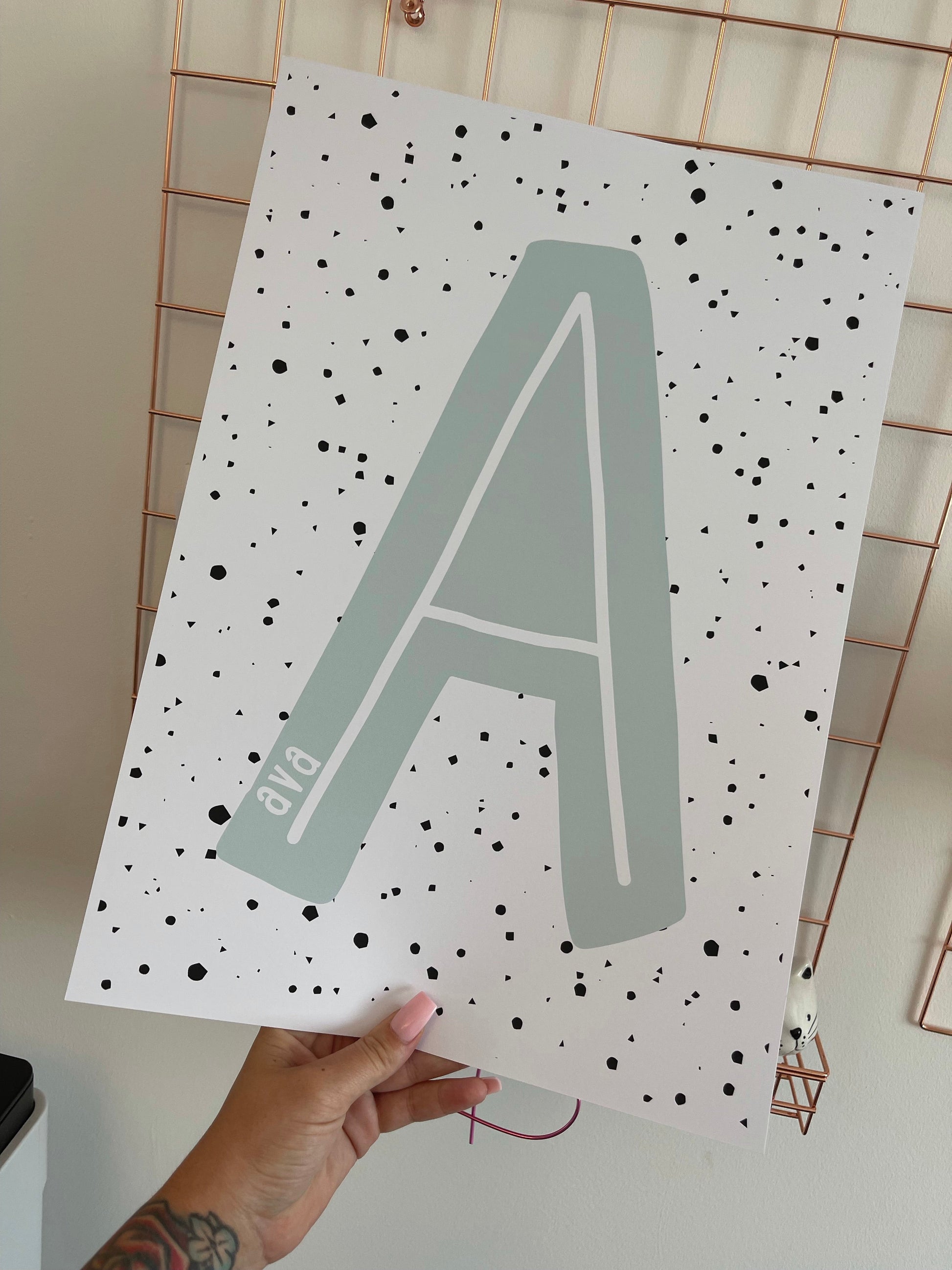 Personalised Name Initial Muted Pastel Colours Nursery Scandinavian Style Children's Room Wall Decor Print