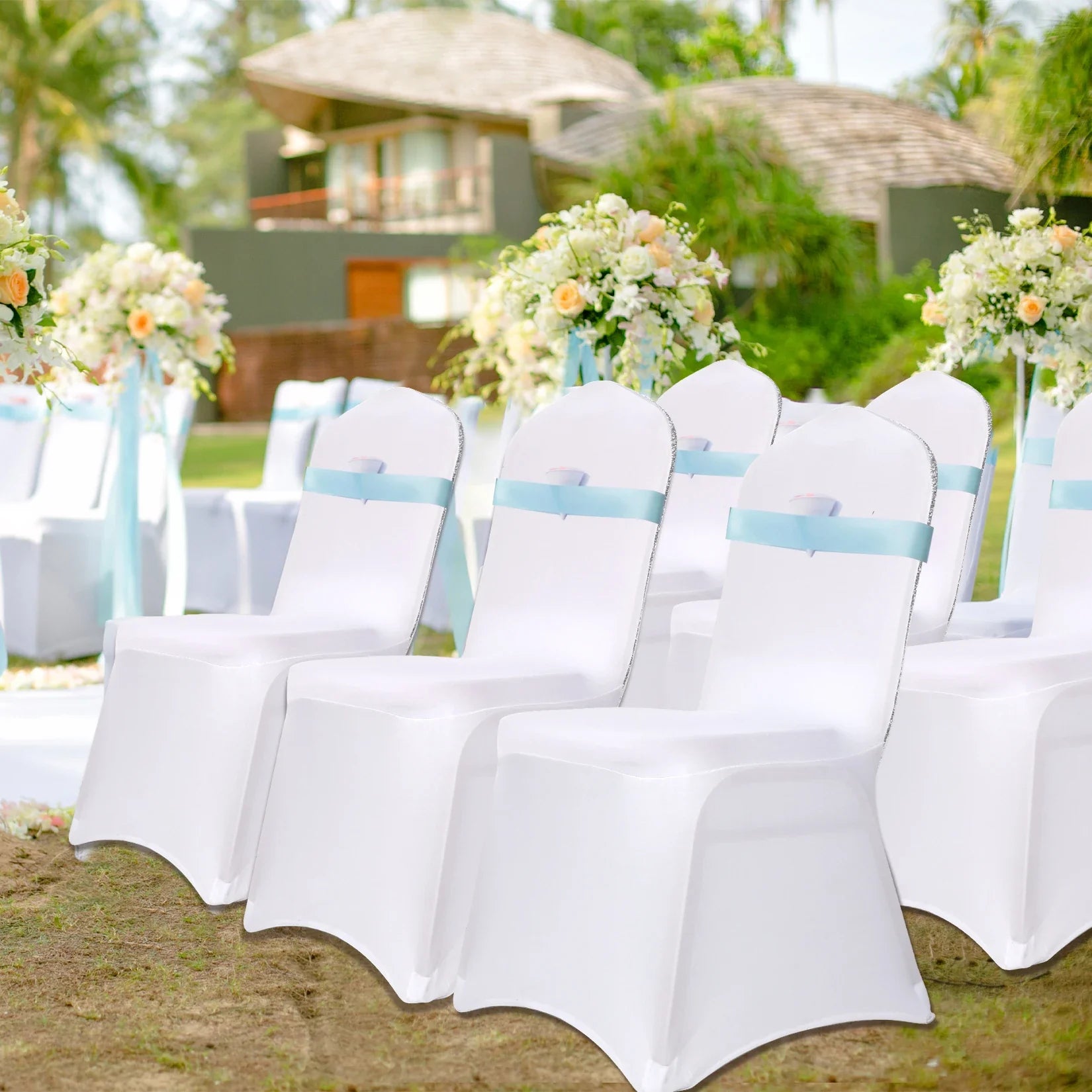 Polyester FOLDING CHAIR COVERS, Wedding Banquet Decor, White and Pink, 10 PCs, 50 PCs, 100PCs