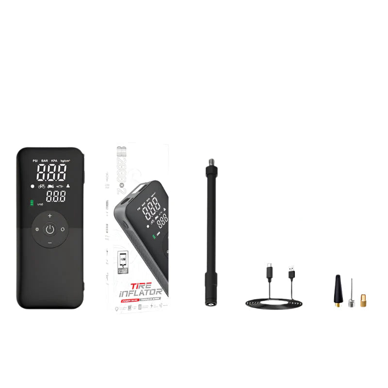 The Rechargeable Air Pump Tire Inflator Portable Compressor is a compact, cordless, and powerful device designed for inflating car tires, motorcycle tires, bicycle tires, sports balls, and other inflatables with ease. Equipped with a digital pressure gauge and auto-shutoff function, this inflator ensures precise inflation every time. Its rechargeable lithium-ion battery provides long-lasting power, making it ideal for on-the-go use at home, in the garage, or during travel.